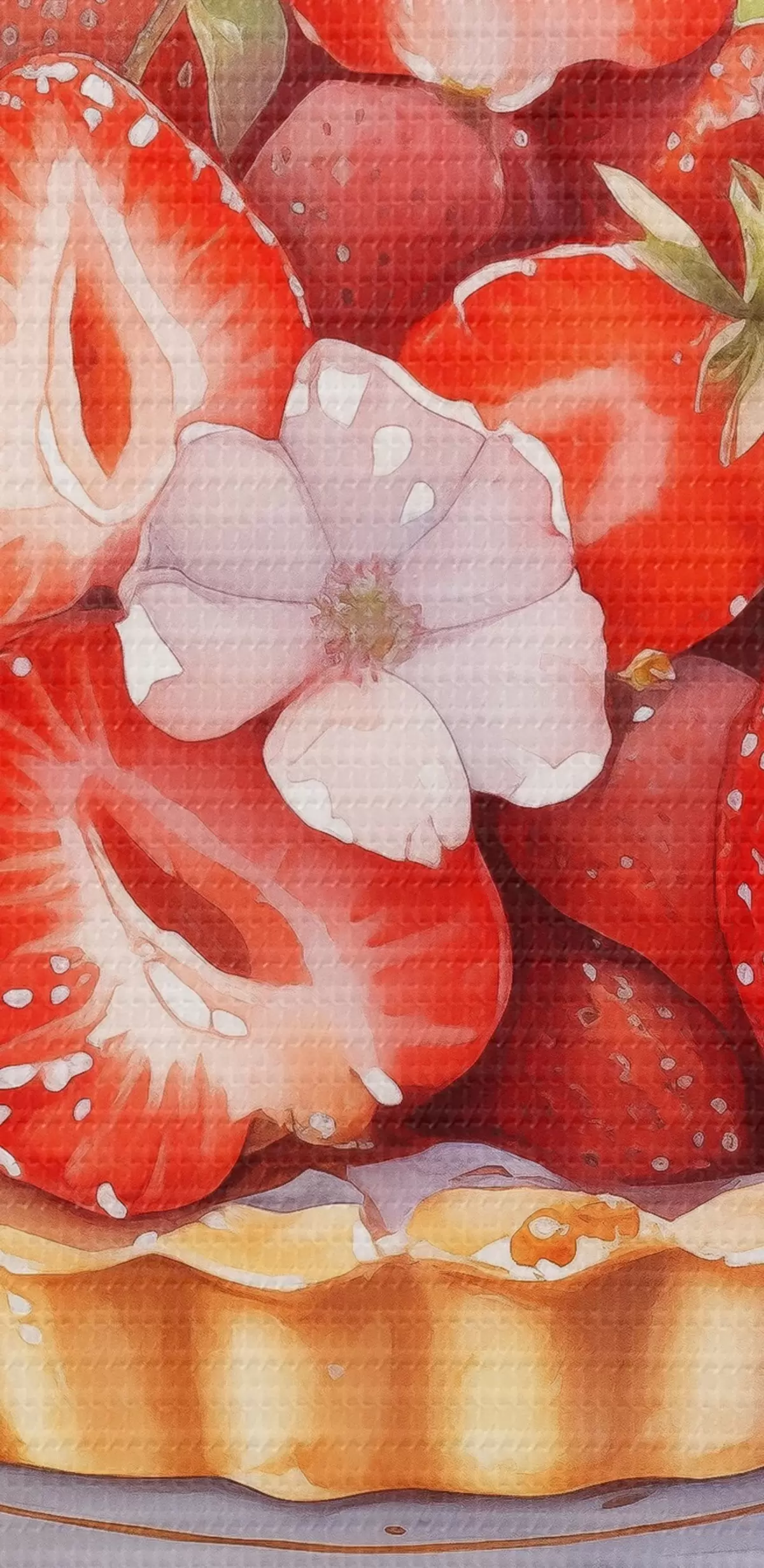 Schilderij Aardbeientaart, aquarel, bloemen Art. s41177