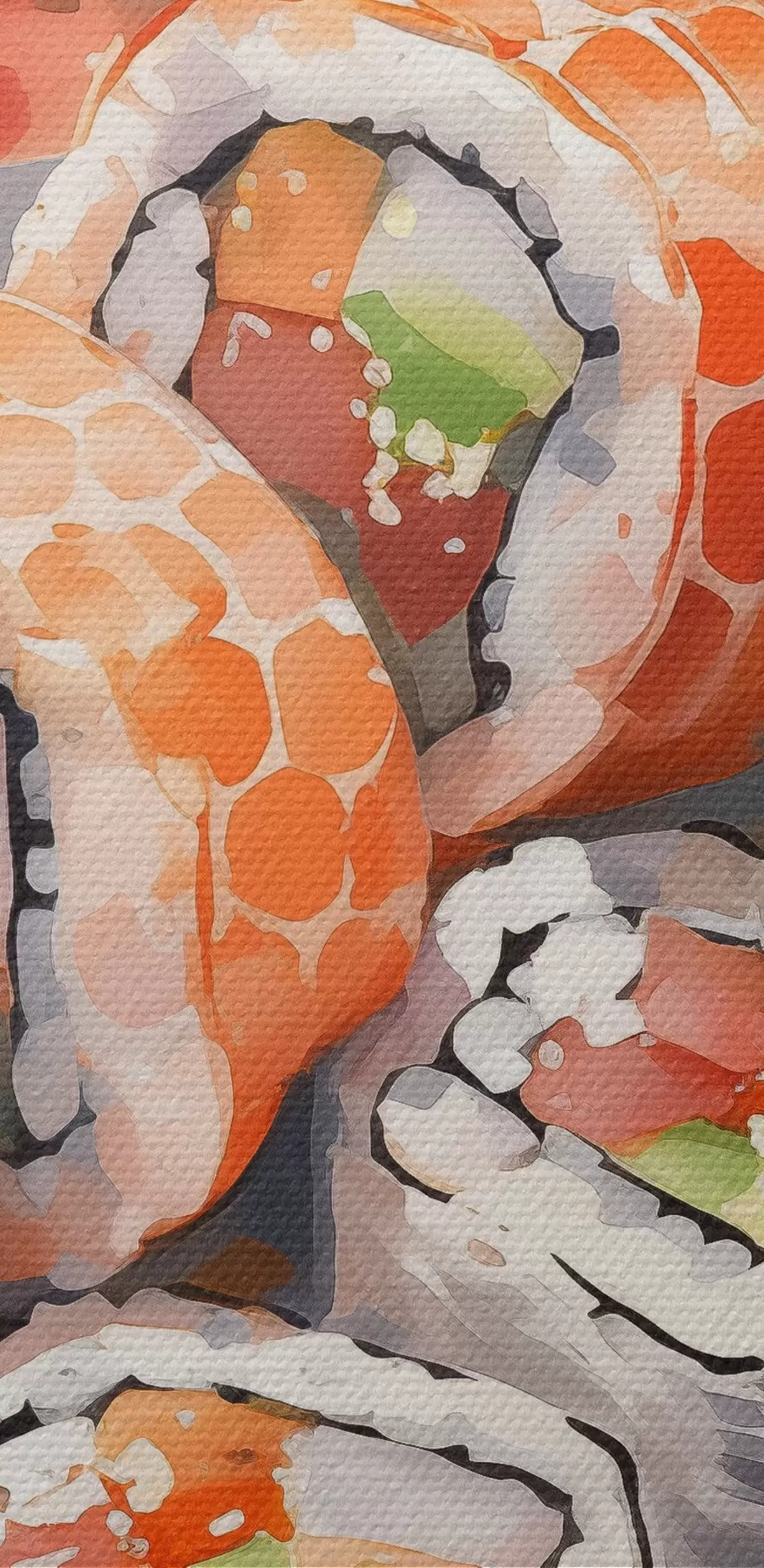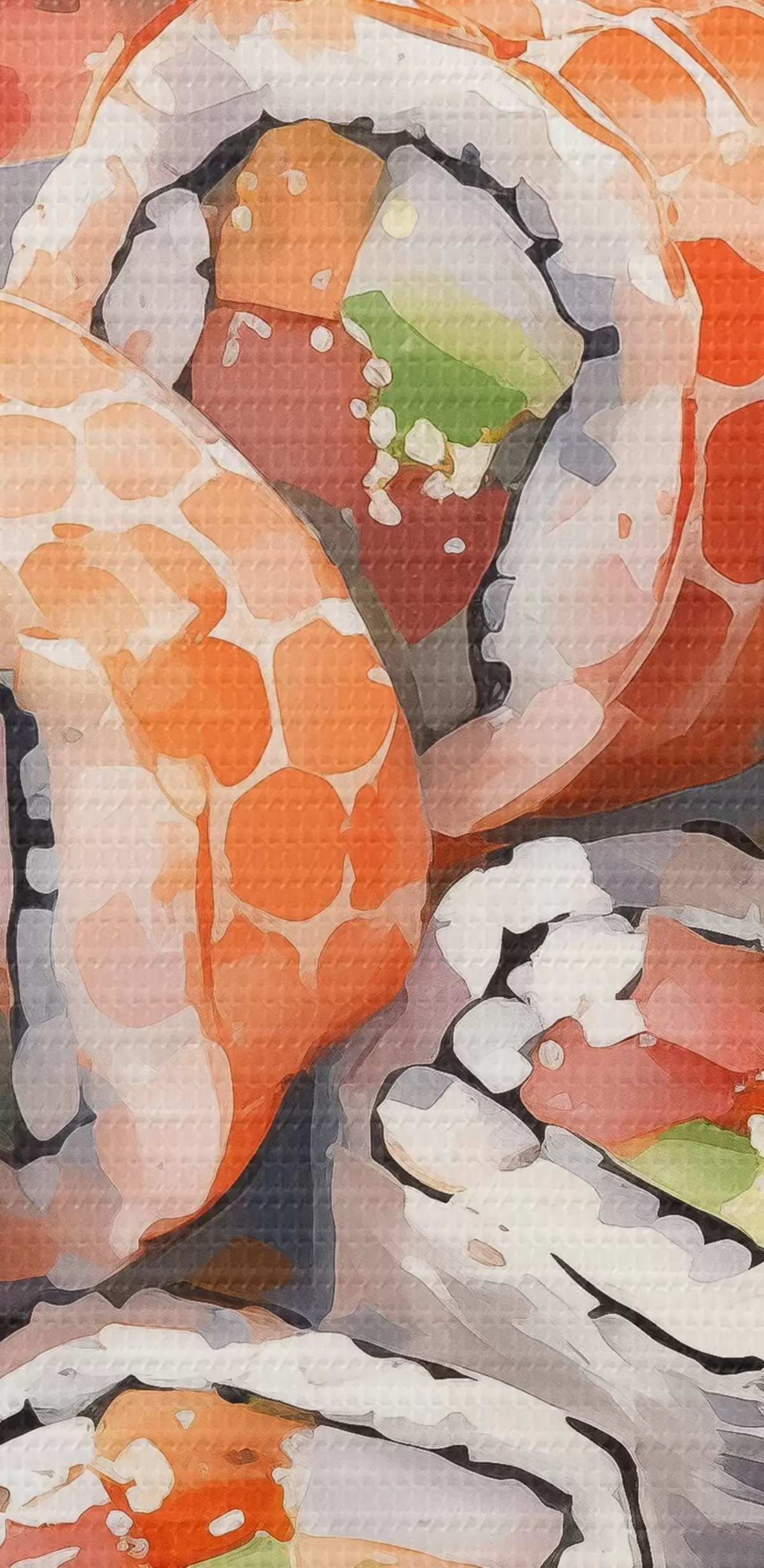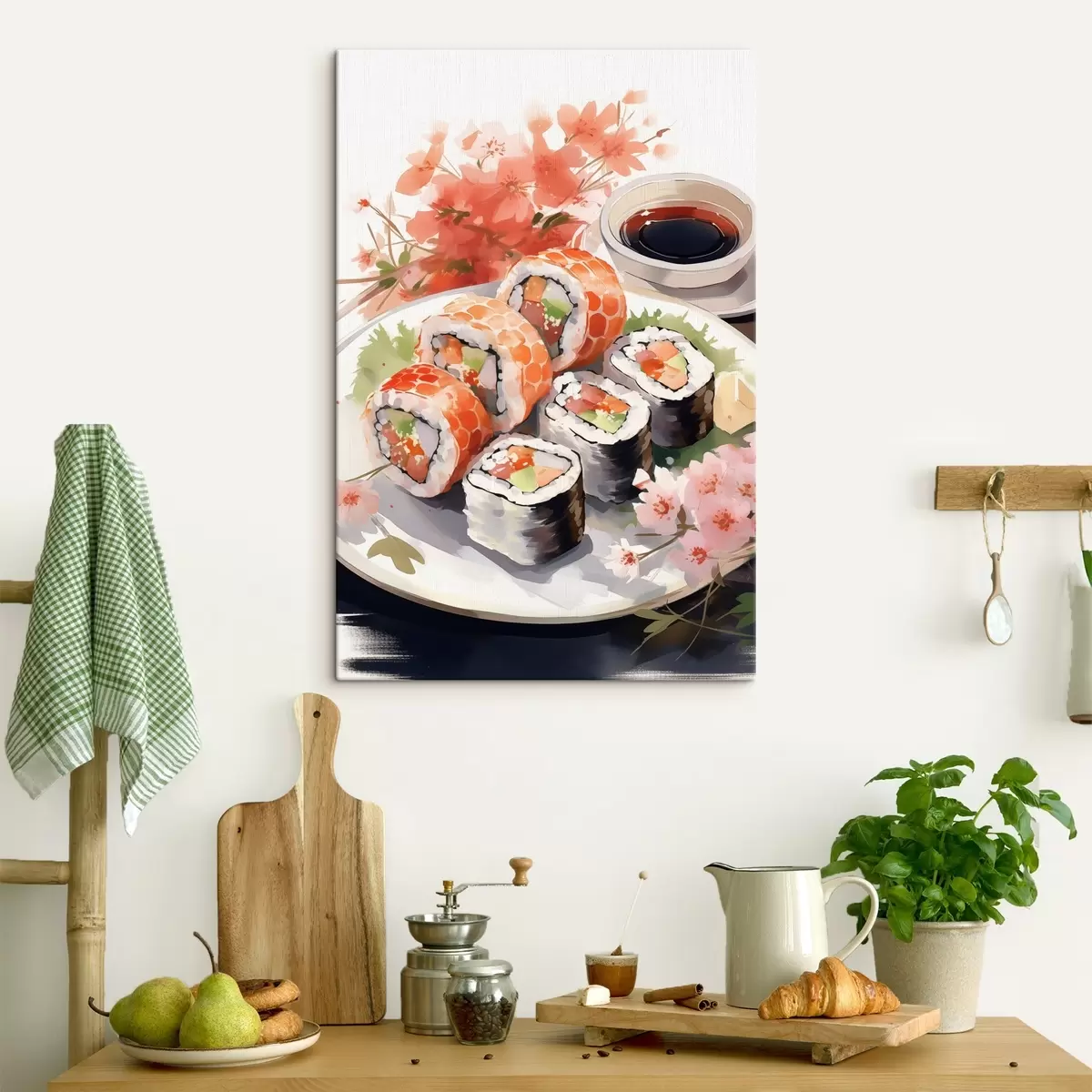 Schilderij Sushi op het bord, aquarel, bloemig, Japans Art. s41179