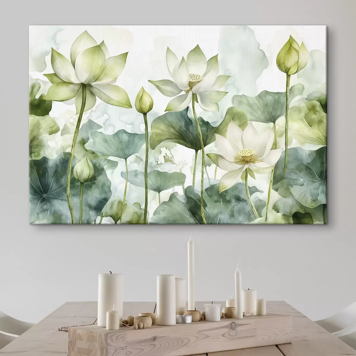 Schilderij Aquarel lotussen, weelderig groen Art. s41226