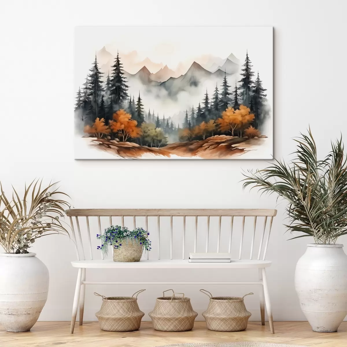 Schilderijen Bos op de achtergrond van bergen aquarel s41240