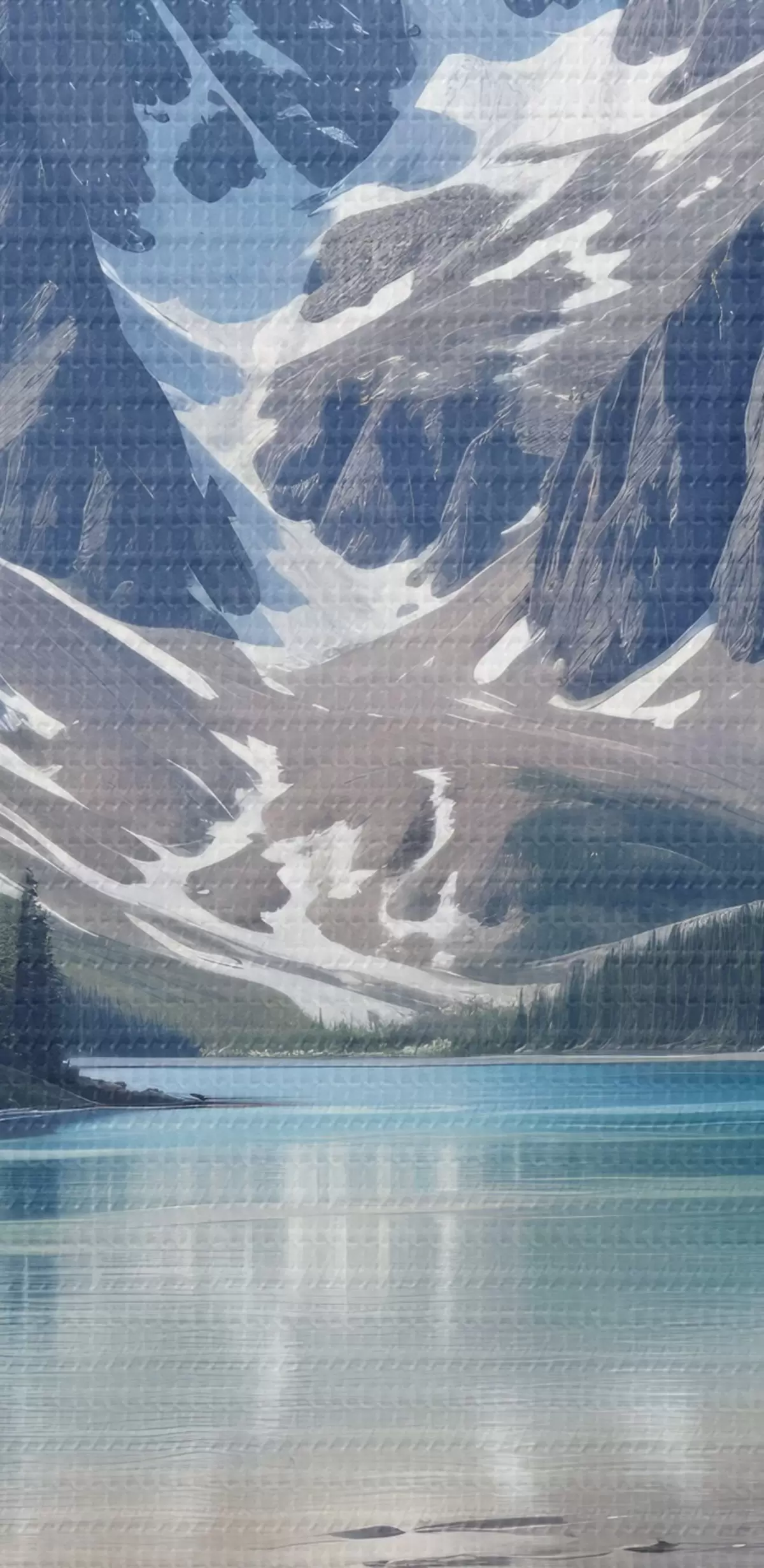 Schilderij Een sereen alpenmeer omringd door majestueuze besneeuwde bergen, met een dicht bos en een bewolkte lucht Art. s41264