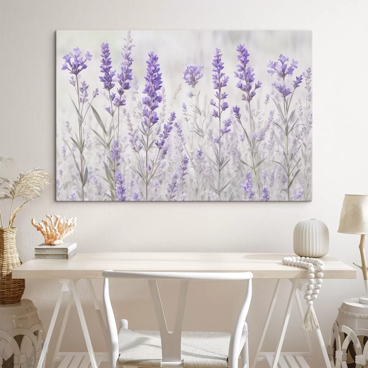 Schilderij Een veld van paarse lavendel bloemen tegen een vage getextureerde achtergrond Art. s41265