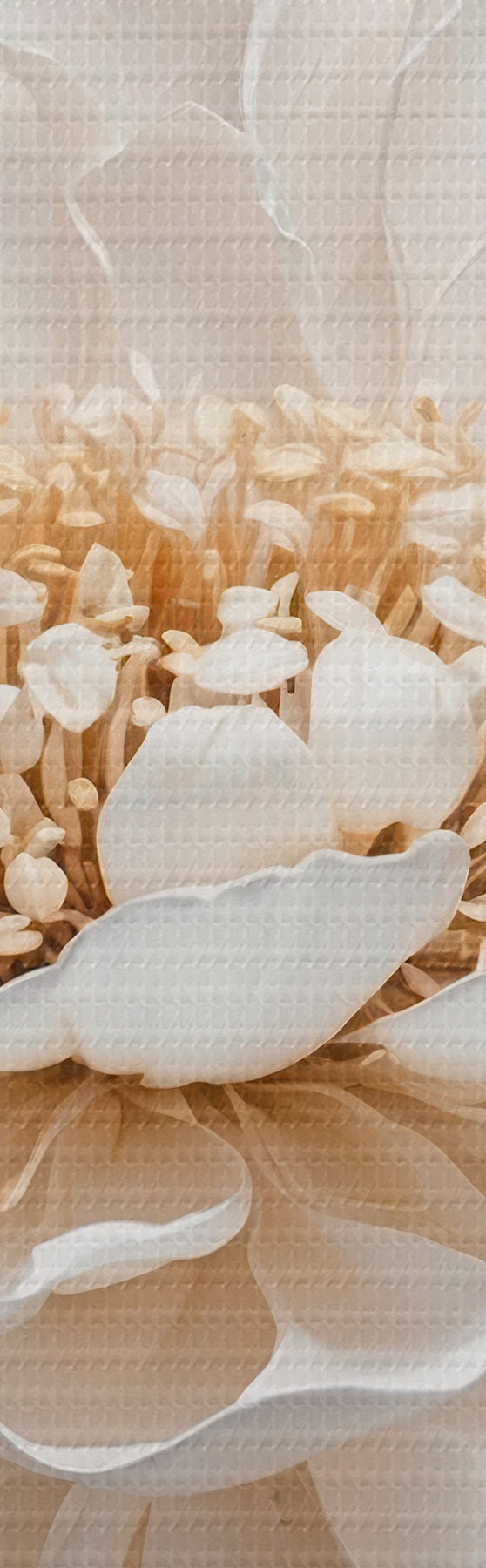 Er zijn drie soorten materiaal te bestellen: Economic Canvas - een dicht en duurzaam materiaal voor digitaal printen, identiek aan schildersdoek, waterdicht oppervlak, realistische weergave van details, materiaal met gemiddelde korrel. Premium Canvas - de textuur lijkt op die van schildersdoek (verweven kleine draden). Zachte, gedetailleerde reproductie van de afbeelding op een mat oppervlak. Eco-Premium - hoogwaardige 100% katoenen stof. Dankzij de natuurlijke katoenvezels is het materiaal duurzaam en slijtvast. Uitstekende kleurweergave en detail.