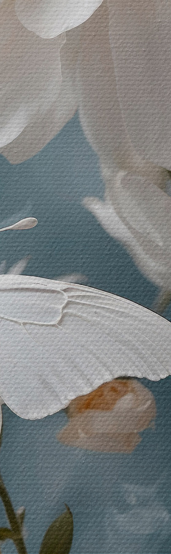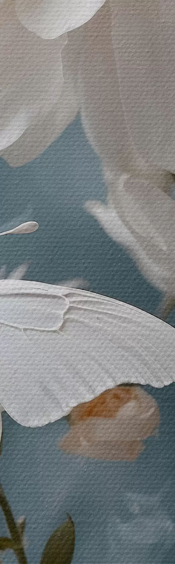 Schilderij Witte bloemen en vlinder op wazige achtergrond Art. s41312