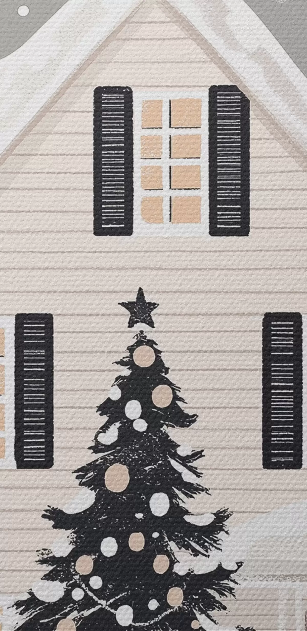 Schilderij Winterstad, versierde dennenboom, Kerstmis, bos, mooi huis Art. s41371