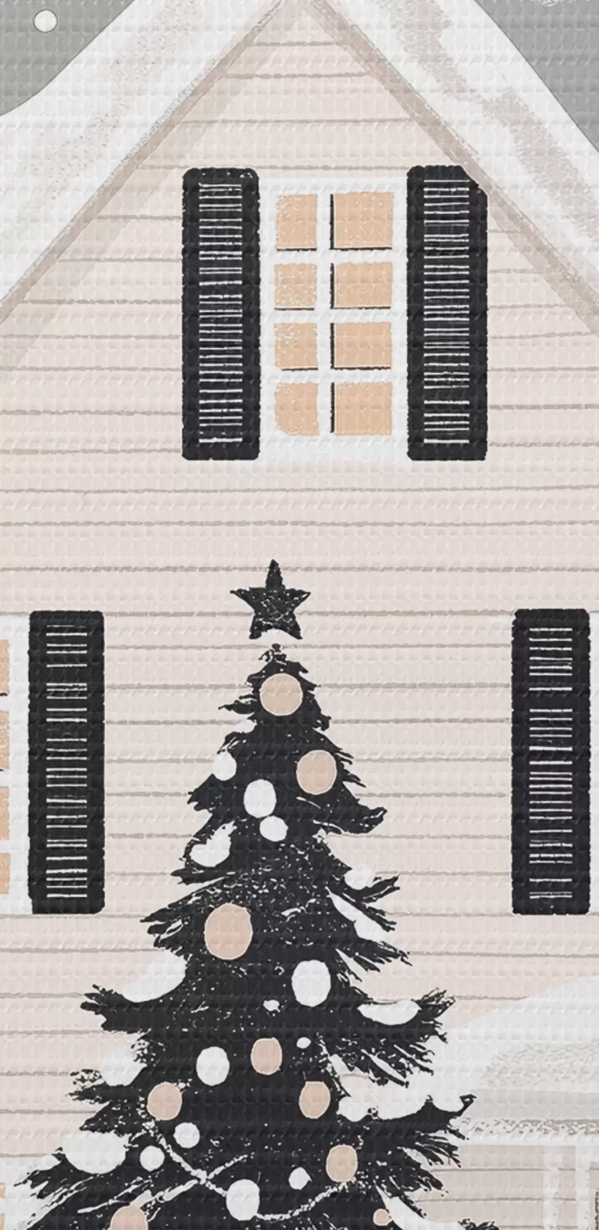 Schilderijen Winterstad, versierde dennenboom, Kerstmis, bos, mooi huis s41371