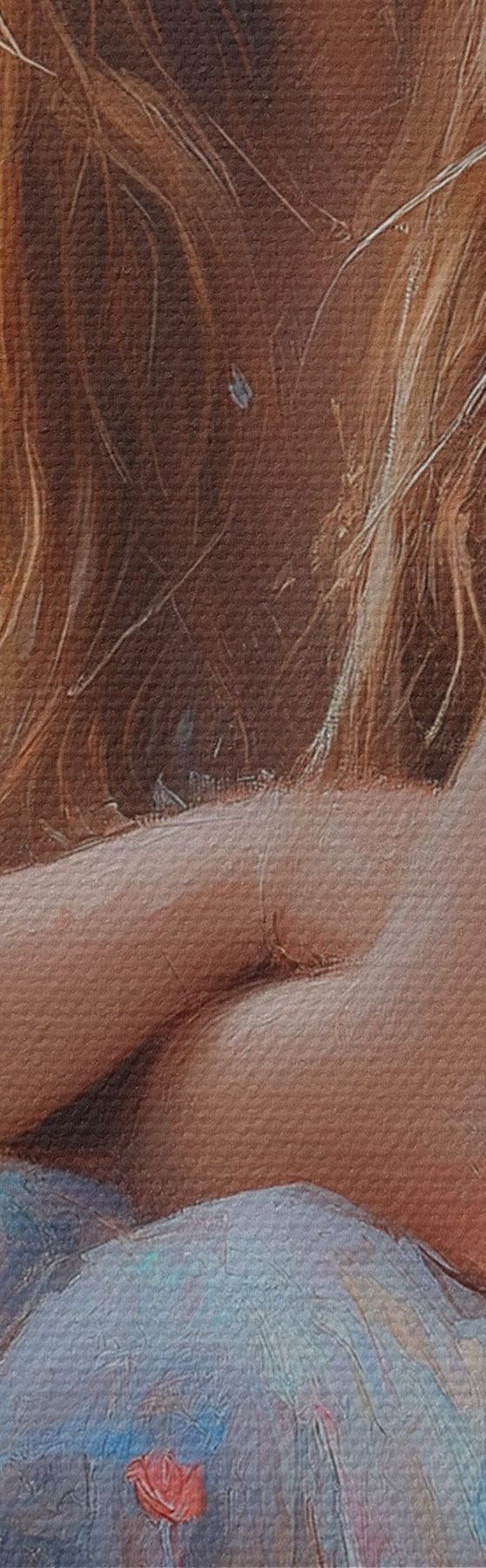 Het schilderij kan voorzichtig worden schoongeveegd met een droge zachte doek of spons; het wordt niet aanbevolen om natte producten te gebruiken. Het gebruik van een vochtige spons is alleen toegestaan als het schilderij gevernist is.