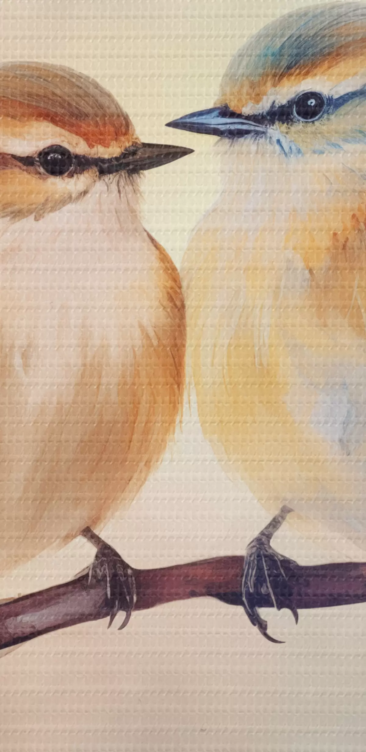 Schilderij Een paar vogels zit op een bloeiende tak Art. s41476