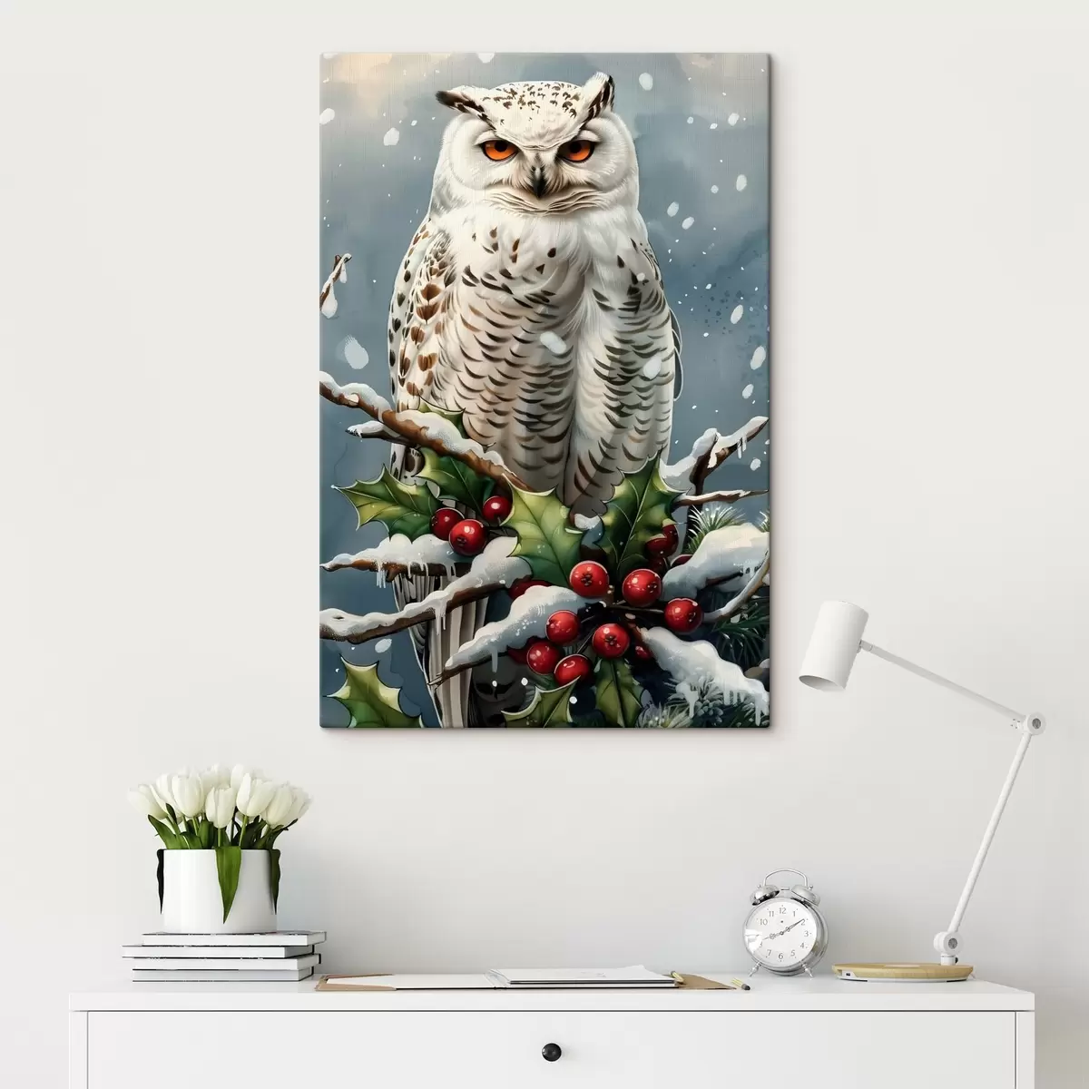 Schilderij Uil op een wintertak met bessen en bladeren Art. s41482