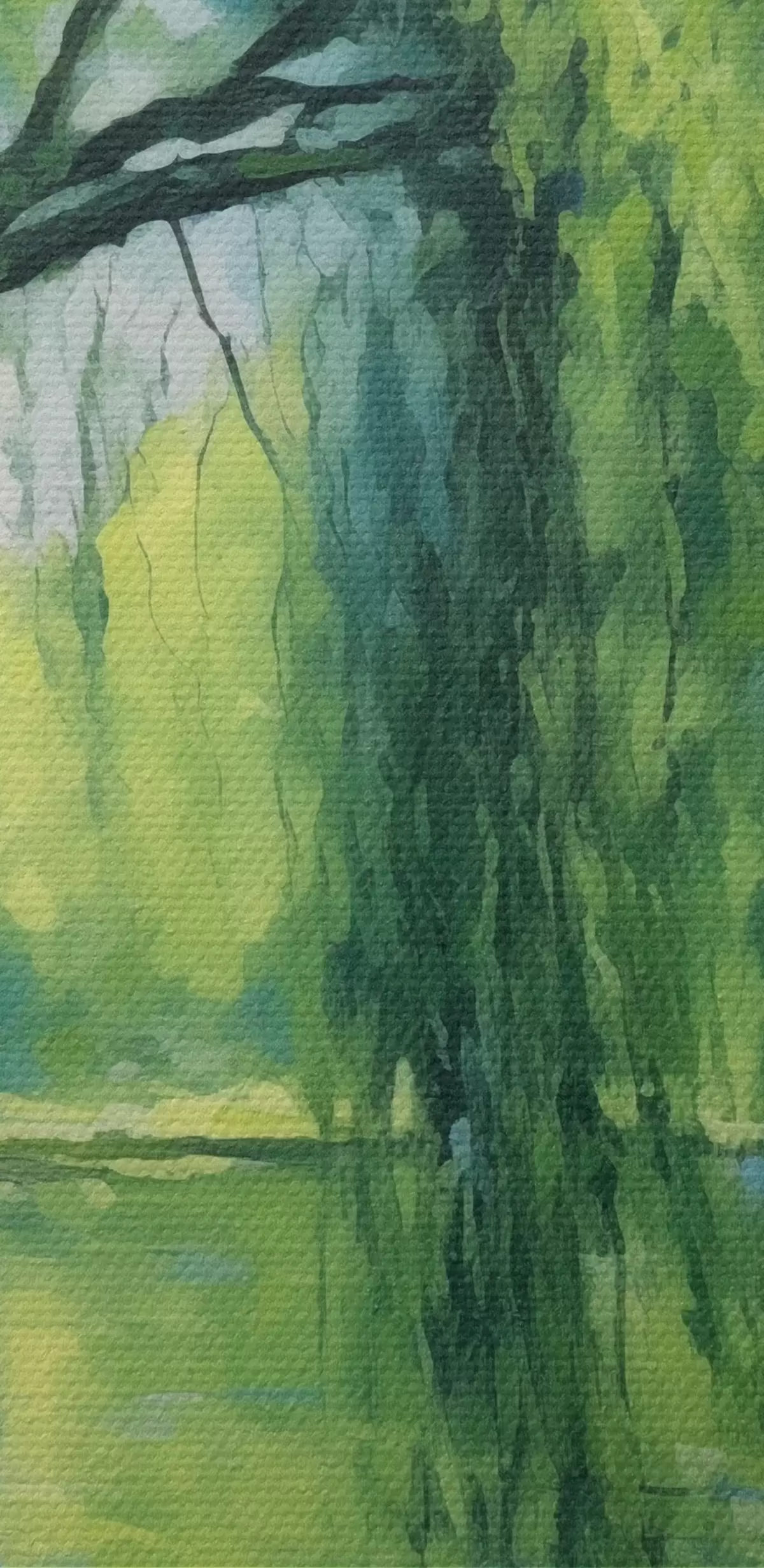 Het schilderij kan direct na ontvangst worden opgehangen. Het schilderij wordt opgespannen op een 2 cm breed houten spieraam.