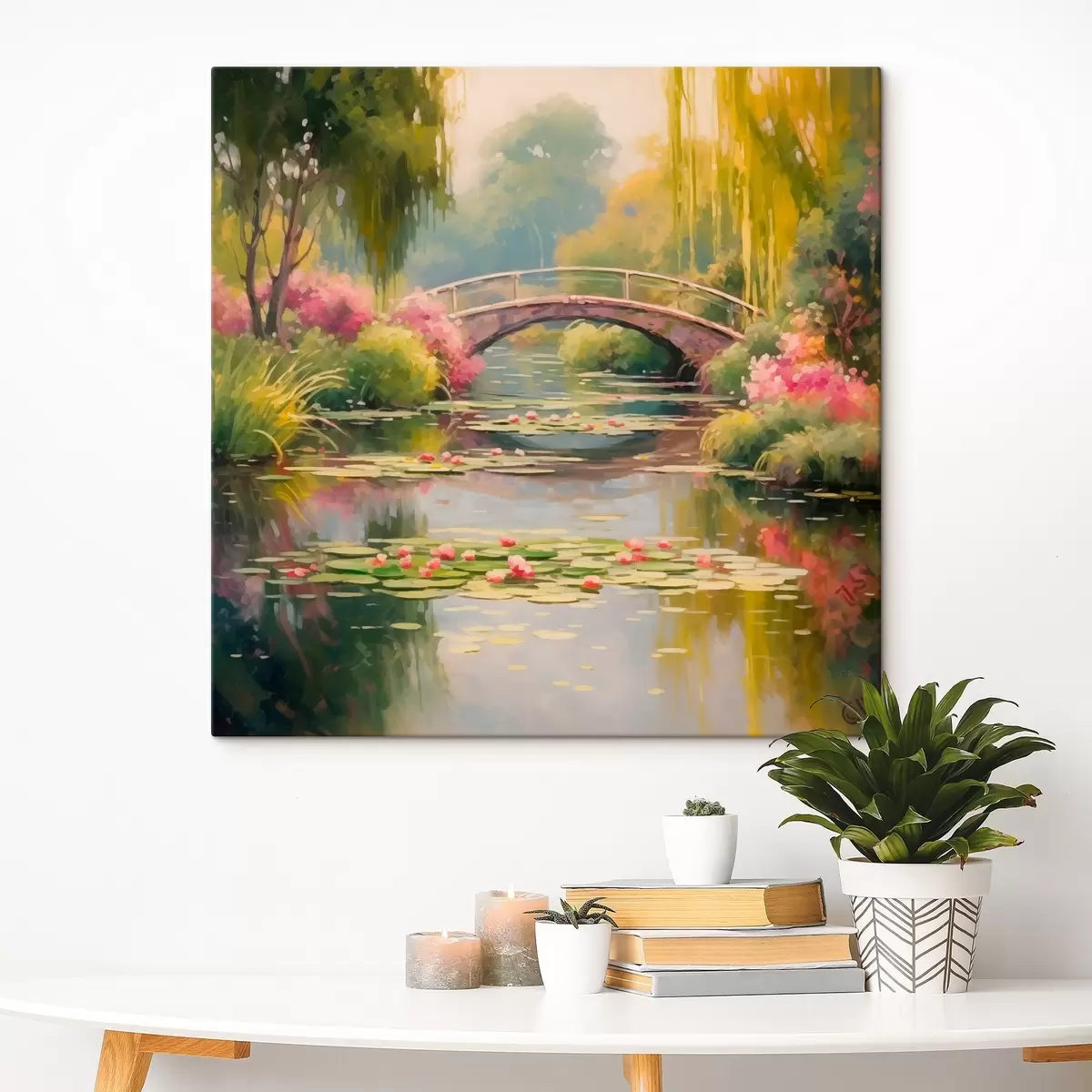 Schilderijen Tuinbrug over het meer met waterlelies s41503
