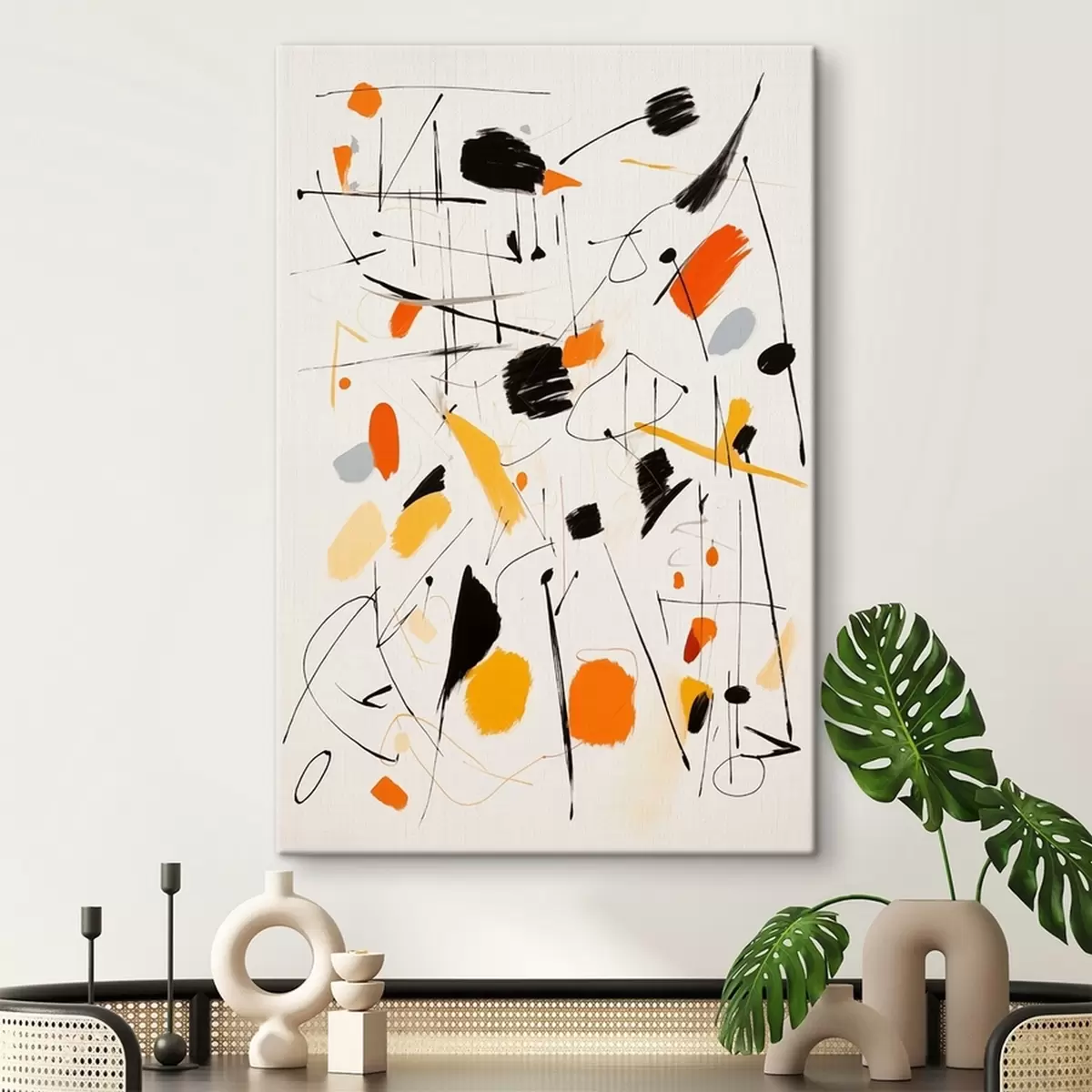Het schilderij kan direct na ontvangst worden opgehangen. Het schilderij wordt opgespannen op een 2 cm breed houten spieraam.