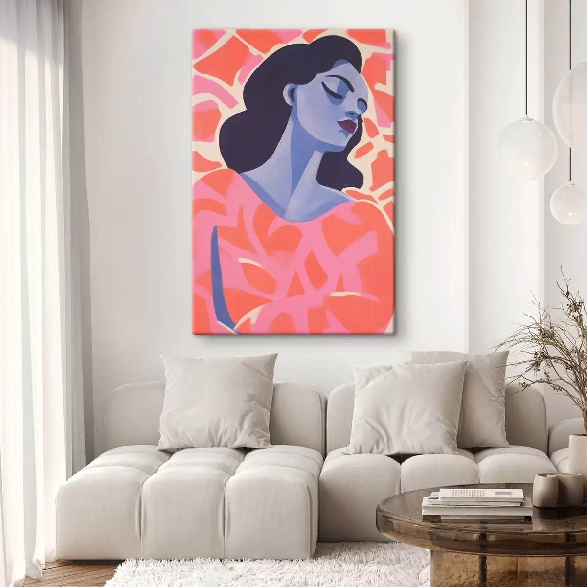 Schilderijen Blauw meisje met donkerpaars paars haar in zwarte en rode kleren s41614
