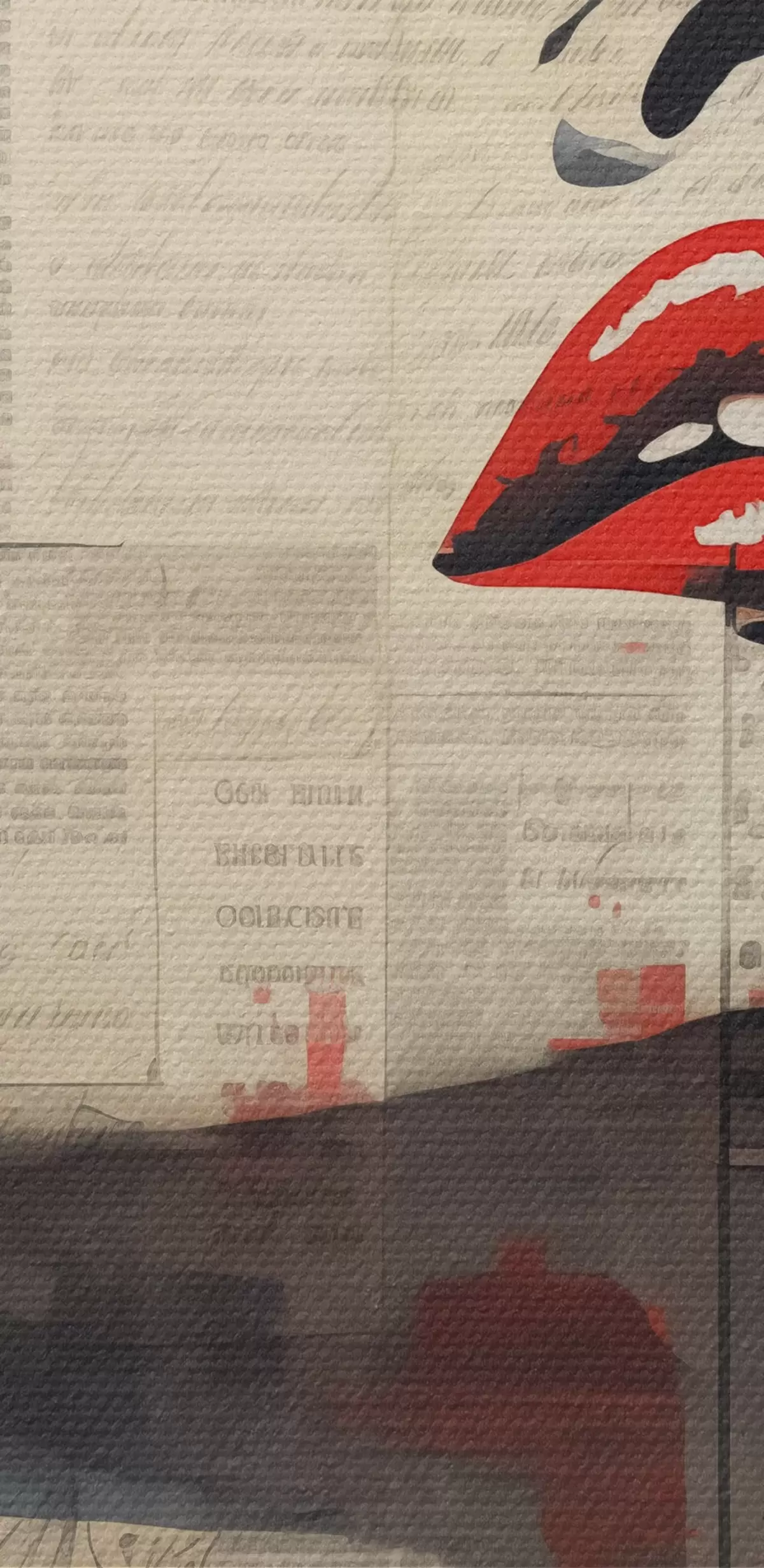 Schilderijen Portret van een meisje op een oude krant in collagestijl s41619