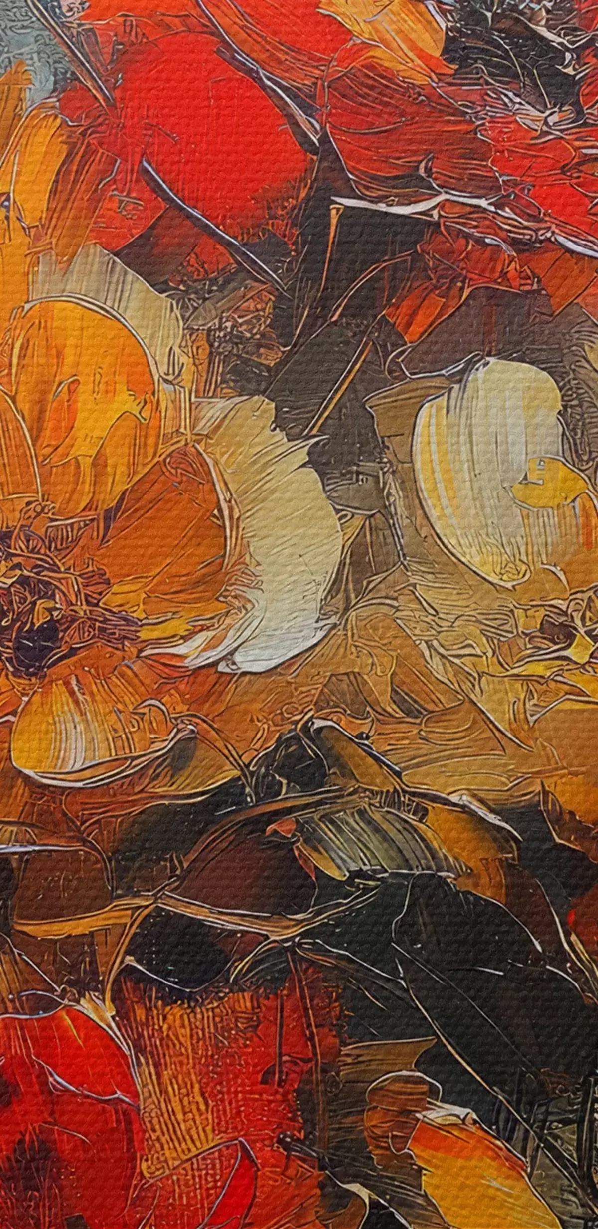 Het schilderij kan direct na ontvangst worden opgehangen. Het schilderij wordt opgespannen op een 2 cm breed houten spieraam.