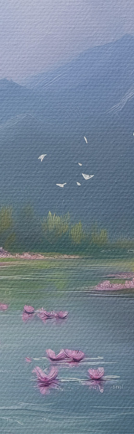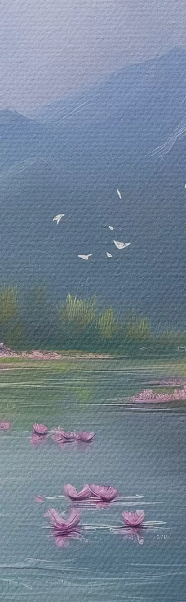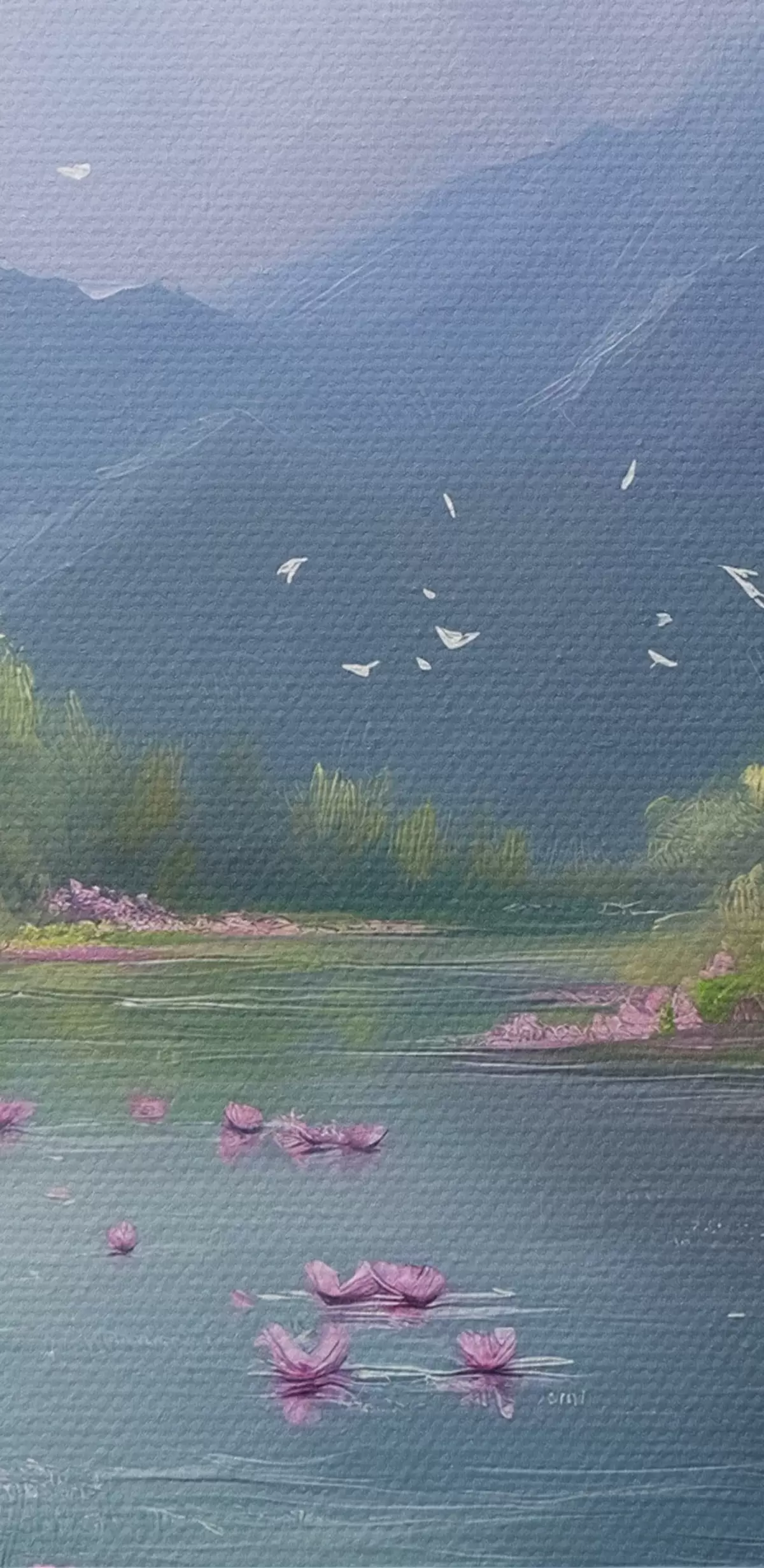 Het schilderij kan direct na ontvangst worden opgehangen. Het schilderij wordt opgespannen op een 2 cm breed houten spieraam.