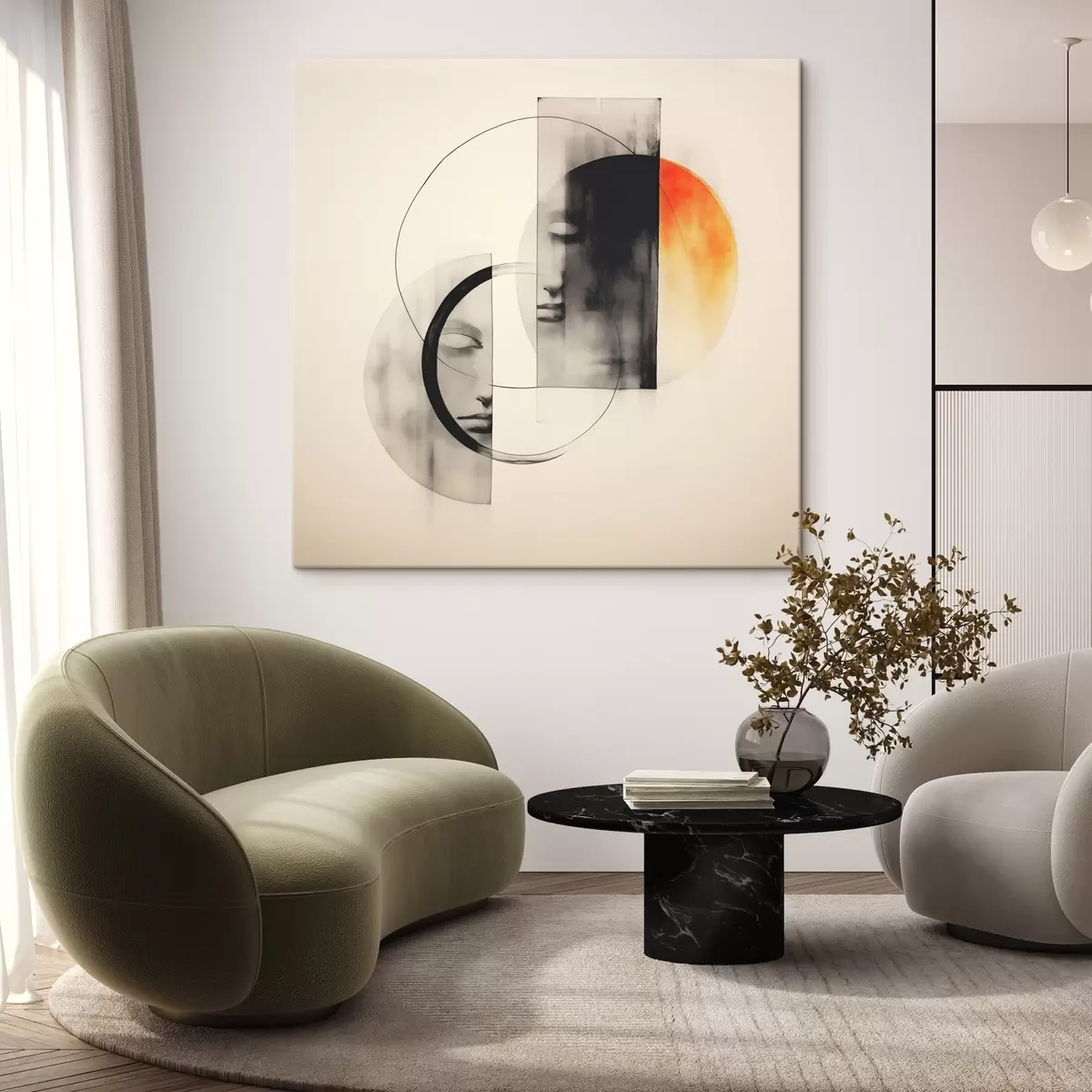 Schilderij Geometrische compositie met een versleten effect en abstracte gezichten Art. s41697