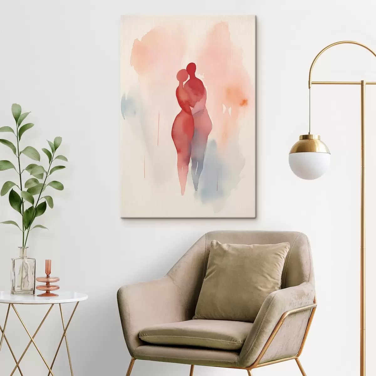Schilderij Abstracte mensen knuffelen in aquarelstijl Art. s41702