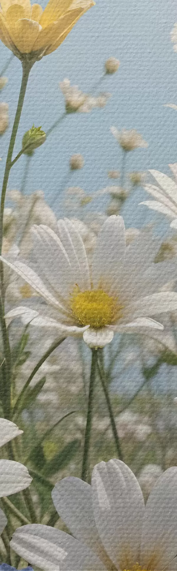 Er zijn drie soorten materiaal te bestellen: Economic Canvas - een dicht en duurzaam materiaal voor digitaal printen, identiek aan schildersdoek, waterdicht oppervlak, realistische weergave van details, materiaal met gemiddelde korrel. Premium Canvas - de textuur lijkt op die van schildersdoek (verweven kleine draden). Zachte, gedetailleerde reproductie van de afbeelding op een mat oppervlak. Eco-Premium - hoogwaardige 100% katoenen stof. Dankzij de natuurlijke katoenvezels is het materiaal duurzaam en slijtvast. Uitstekende kleurweergave en detail.