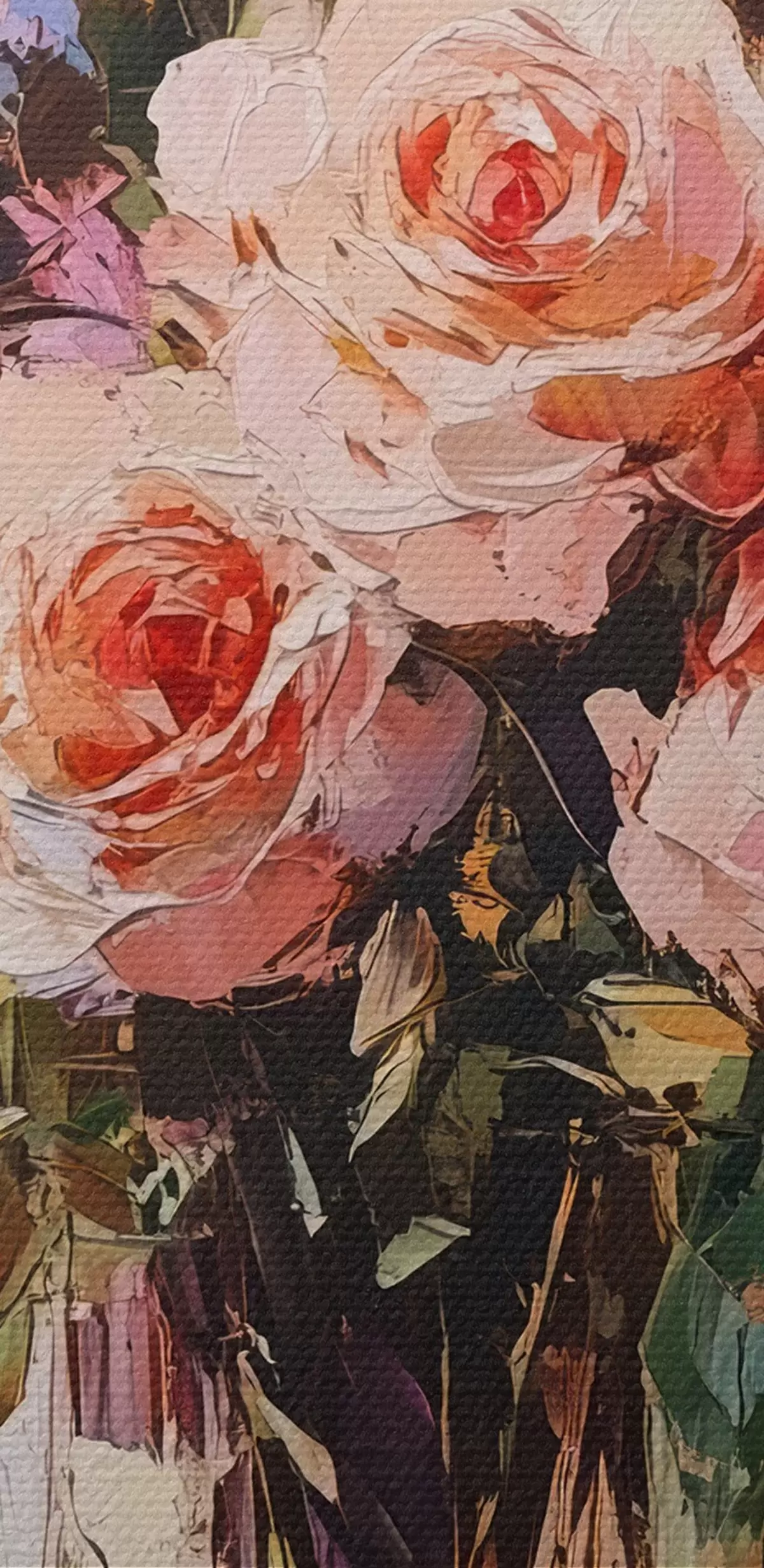 Er zijn drie soorten materiaal te bestellen: Economic Canvas - een dicht en duurzaam materiaal voor digitaal printen, identiek aan schildersdoek, waterdicht oppervlak, realistische weergave van details, materiaal met gemiddelde korrel. Premium Canvas - de textuur lijkt op die van schildersdoek (verweven kleine draden). Zachte, gedetailleerde reproductie van de afbeelding op een mat oppervlak. Eco-Premium - hoogwaardige 100% katoenen stof. Dankzij de natuurlijke katoenvezels is het materiaal duurzaam en slijtvast. Uitstekende kleurweergave en detail.