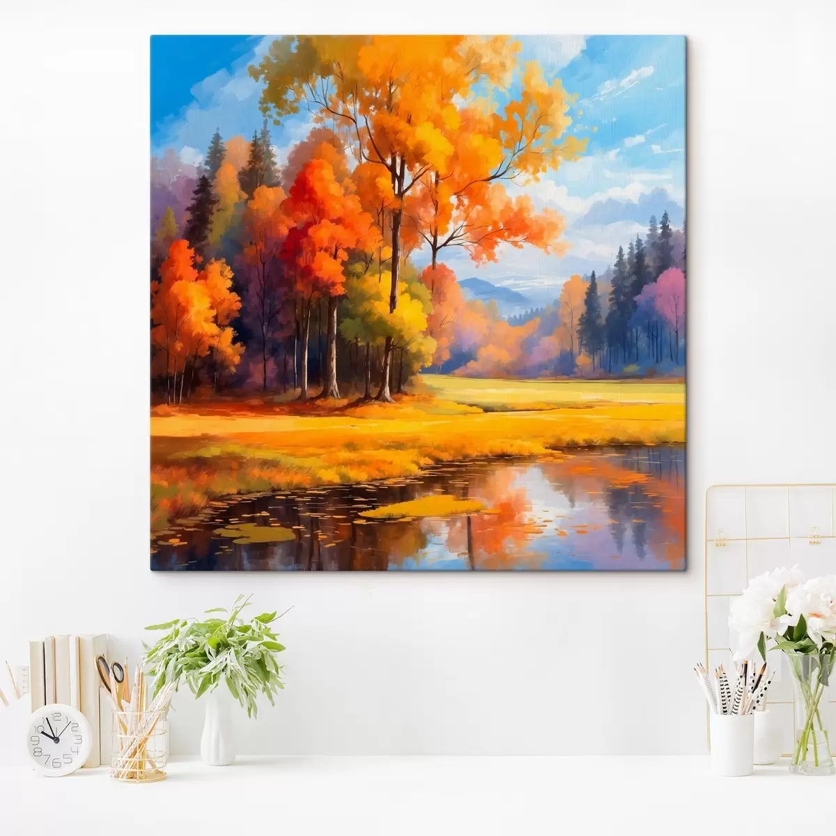Schilderijen Meer en herfstbos in acrylstijl s41766