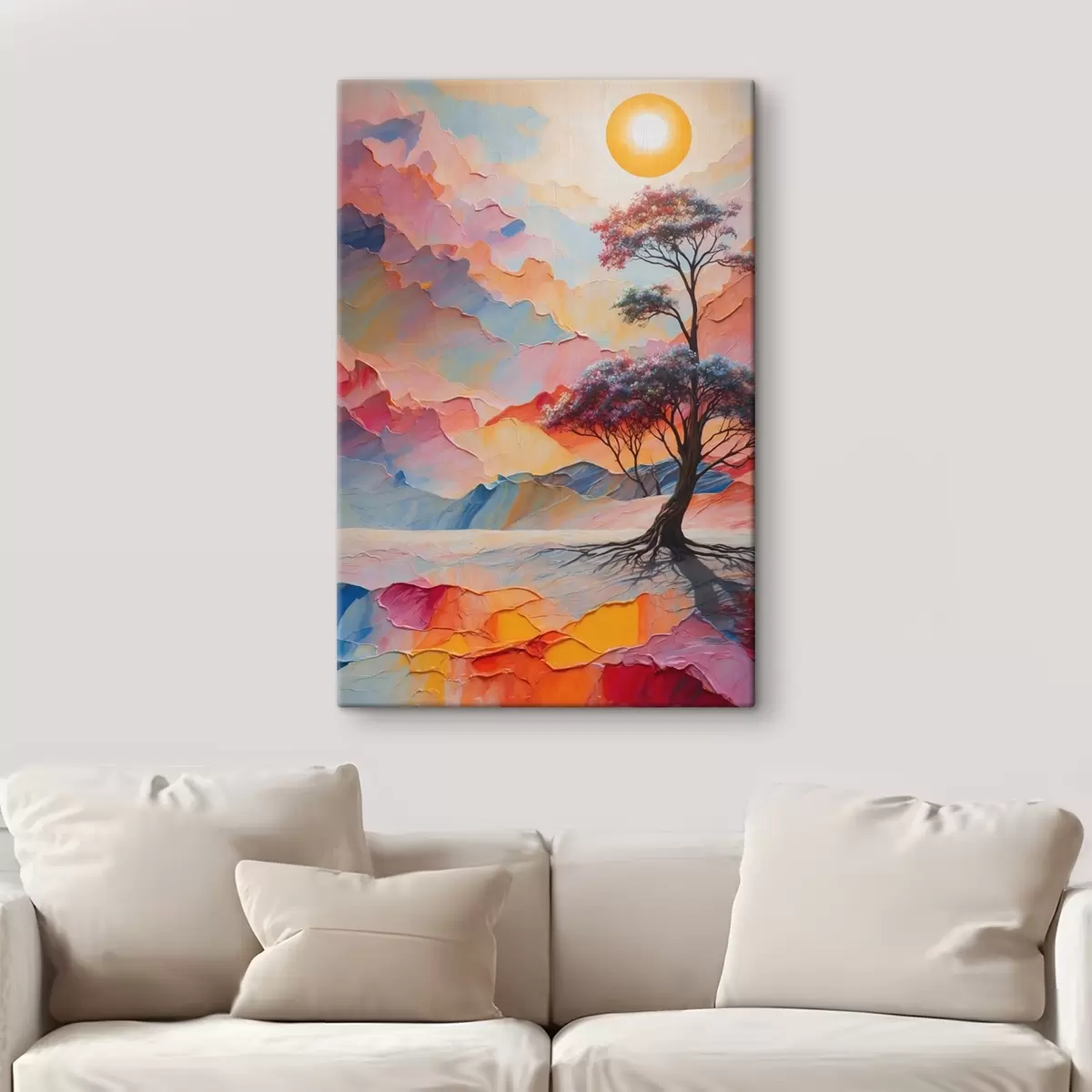 Schilderijen Boom en zon op abstracte achtergrond in acrylstijl s41771
