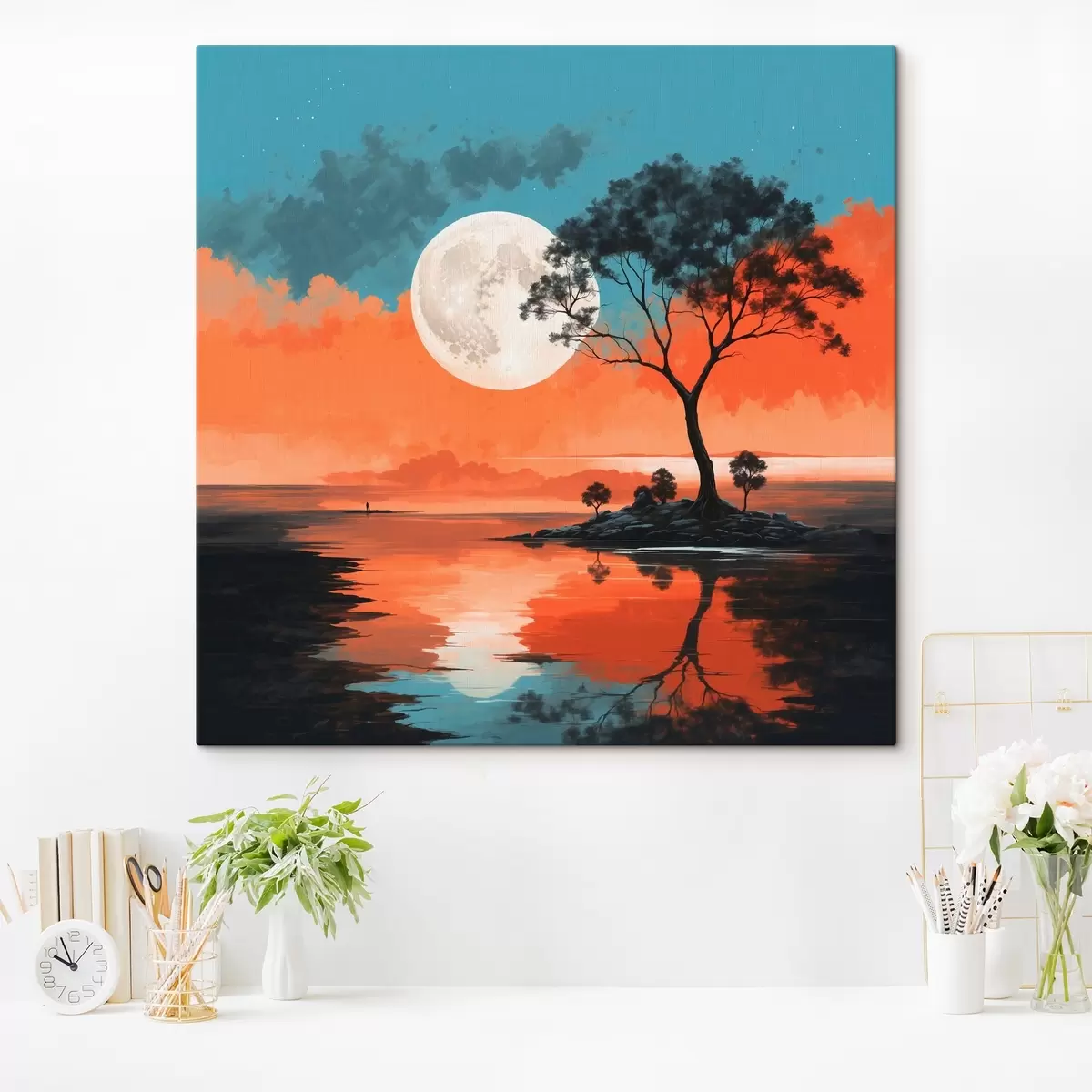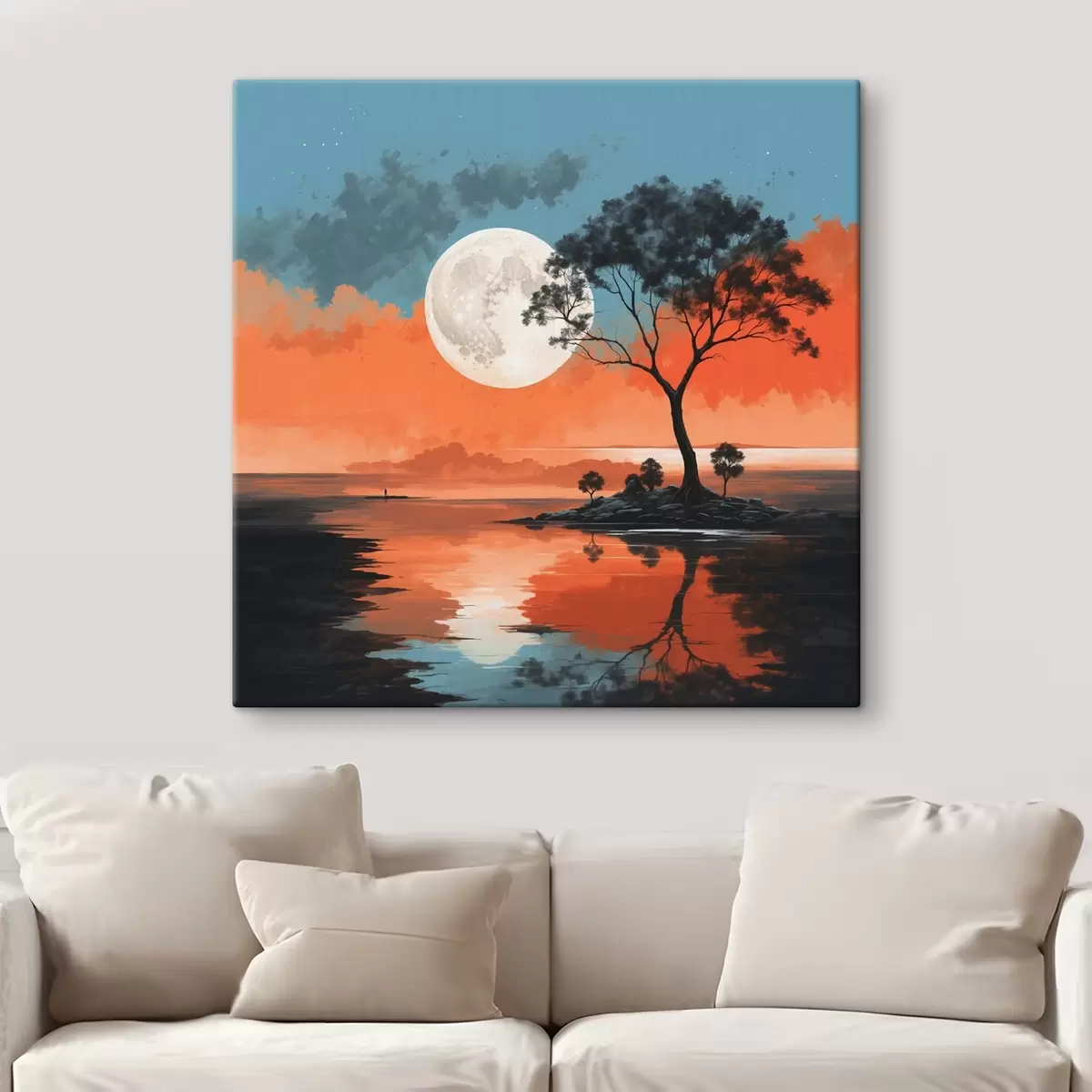 Schilderij Boom in het midden van een meer op de achtergrond van de maan Art. s41775