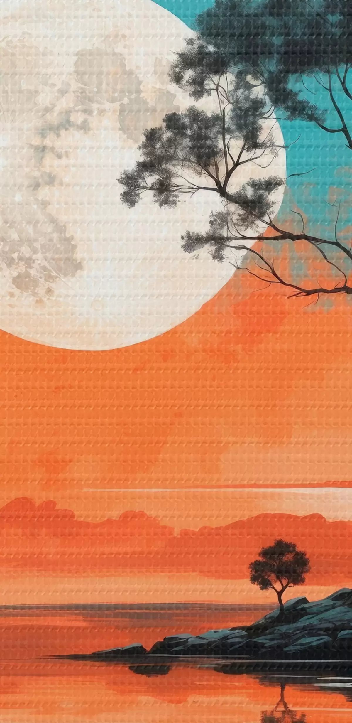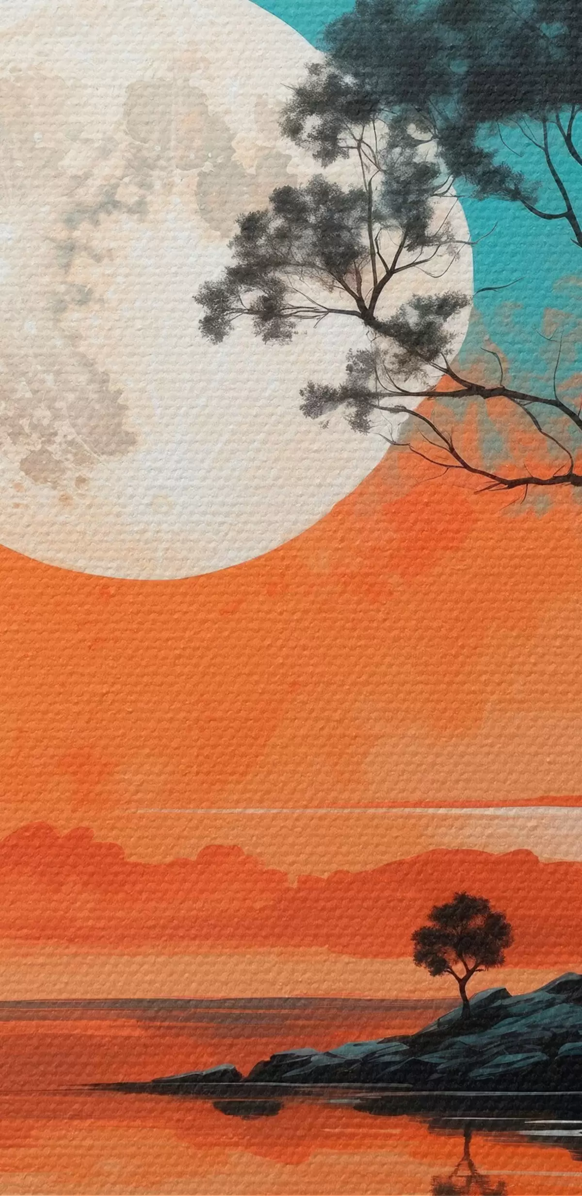 Schilderij Boom in het midden van een meer op de achtergrond van de maan Art. s41775