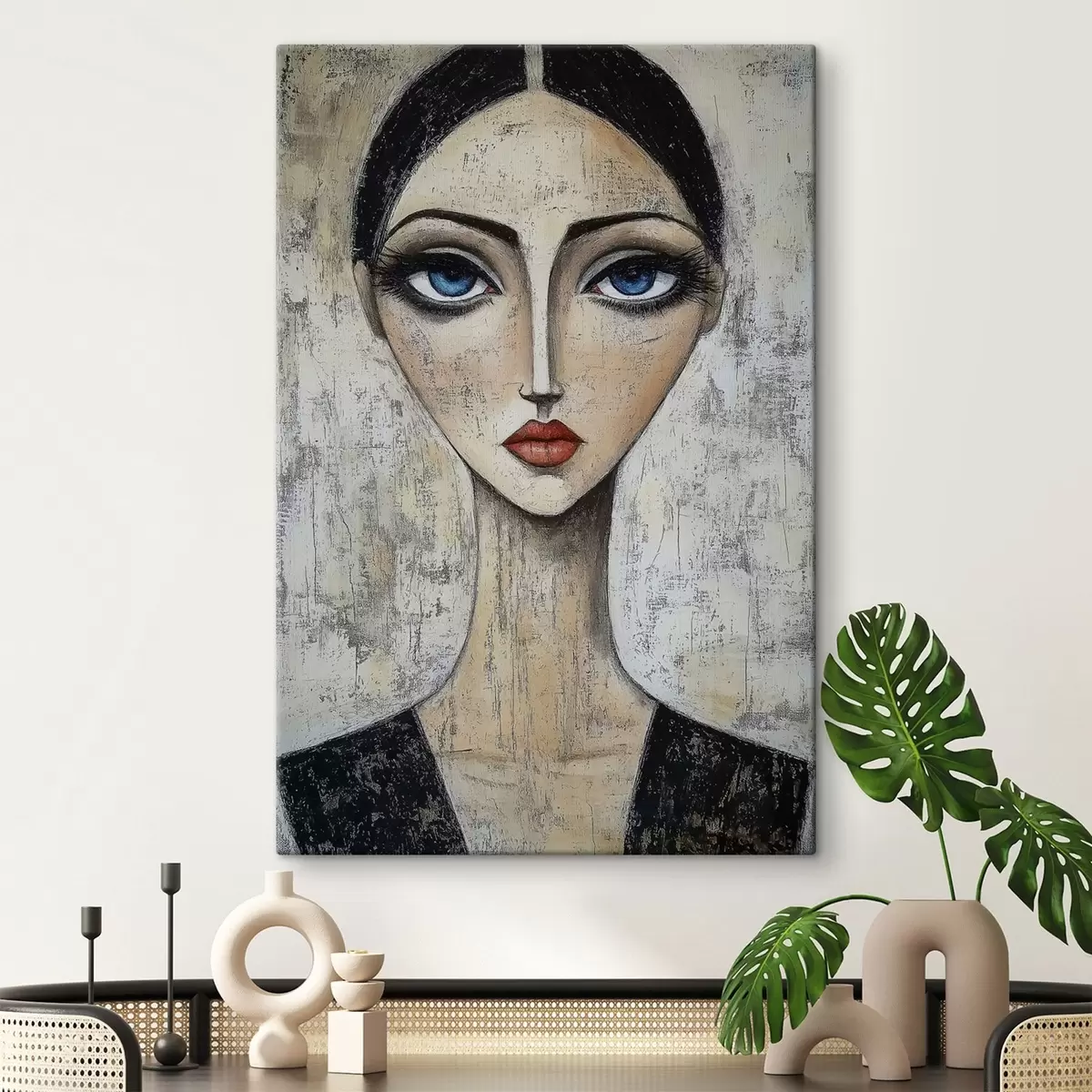 Schilderij Een portret van een vrouw met expressieve ogen in een gestileerde techniek Art. s41811