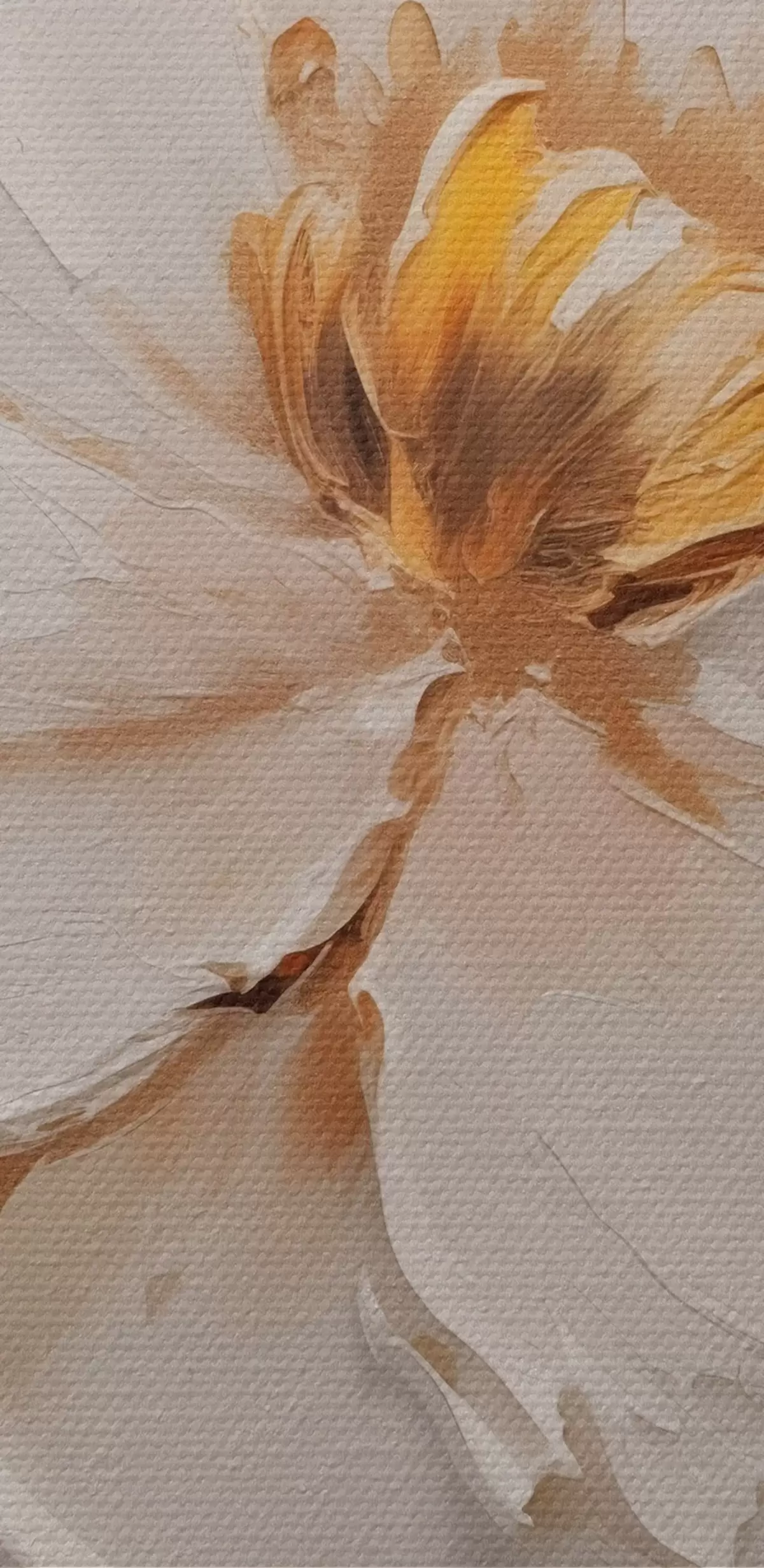Schilderij Een witte bloem met gele tinten op een gestructureerde achtergrond Art. s41820