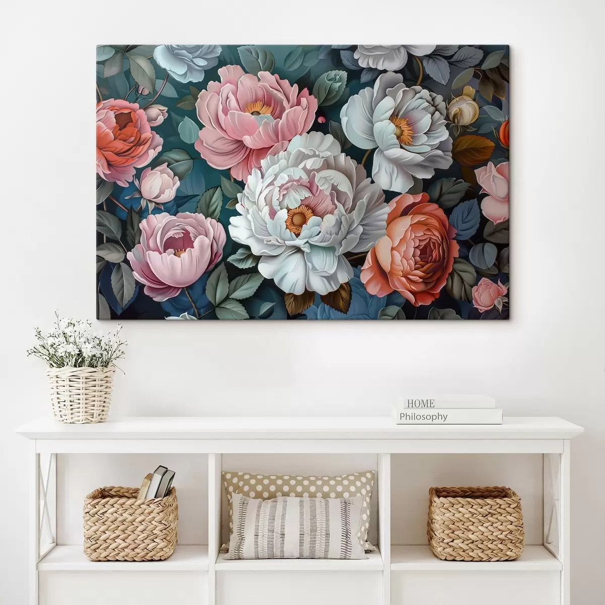 Er zijn drie soorten materiaal te bestellen: Economic Canvas - een dicht en duurzaam materiaal voor digitaal printen, identiek aan schildersdoek, waterdicht oppervlak, realistische weergave van details, materiaal met gemiddelde korrel. Premium Canvas - de textuur lijkt op die van schildersdoek (verweven kleine draden). Zachte, gedetailleerde reproductie van de afbeelding op een mat oppervlak. Eco-Premium - hoogwaardige 100% katoenen stof. Dankzij de natuurlijke katoenvezels is het materiaal duurzaam en slijtvast. Uitstekende kleurweergave en detail.