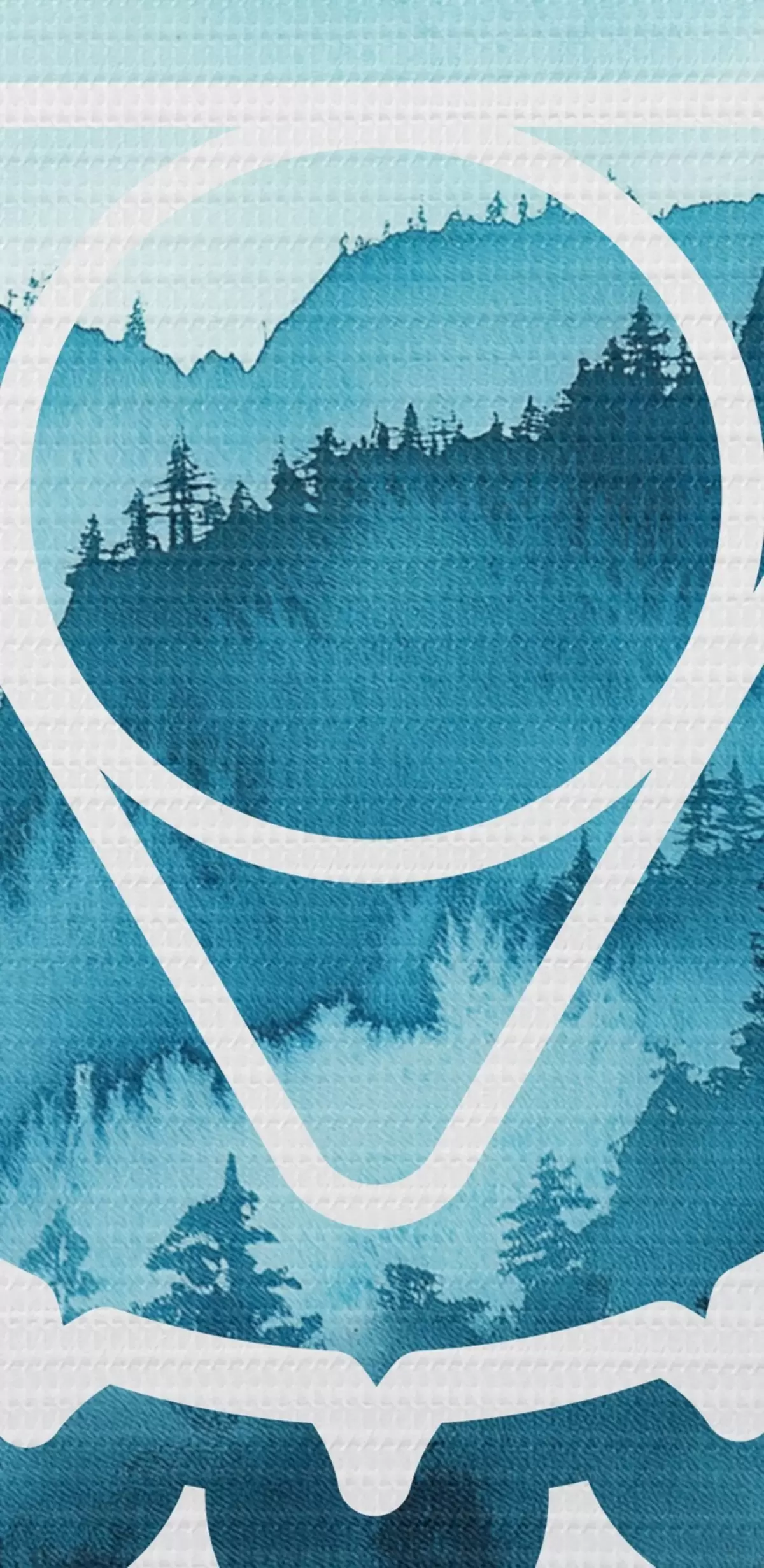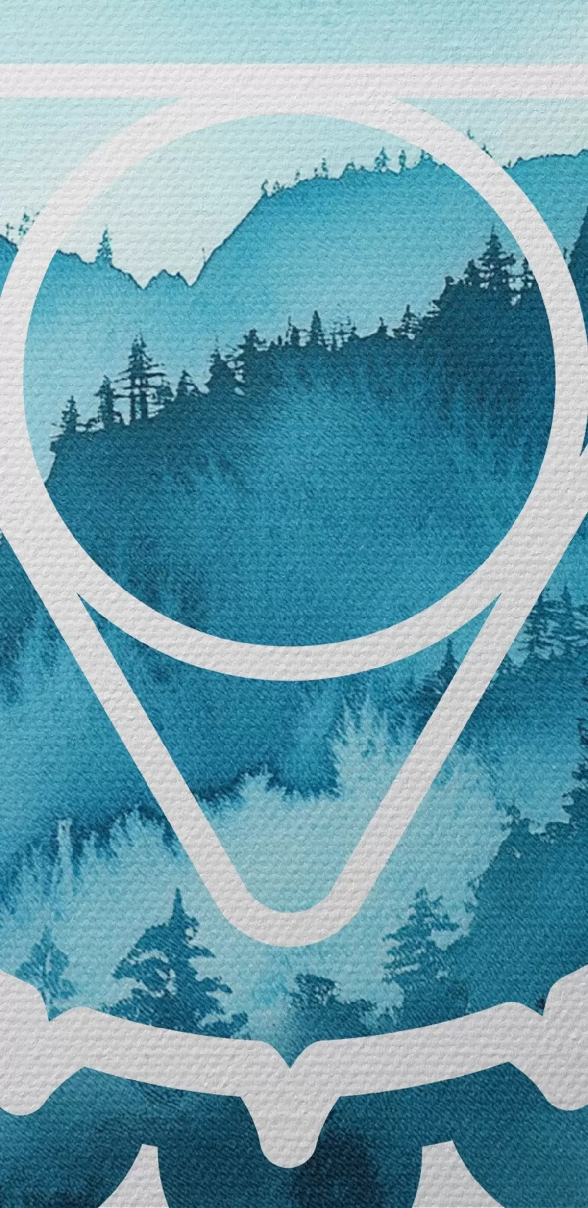 Schilderij Vishuddha chakra, blauw chakra, esoterisch, meditatie, boeddhisme, aquarel stijl bergen Art. s41884