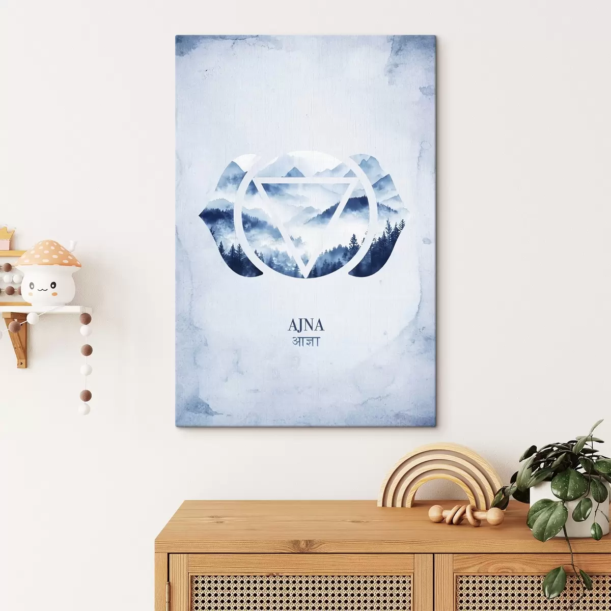 Schilderij Ajna chakra, derde oog chakra, esoterisch, meditatie, boeddhisme, aquarel stijl bergen Art. s41885