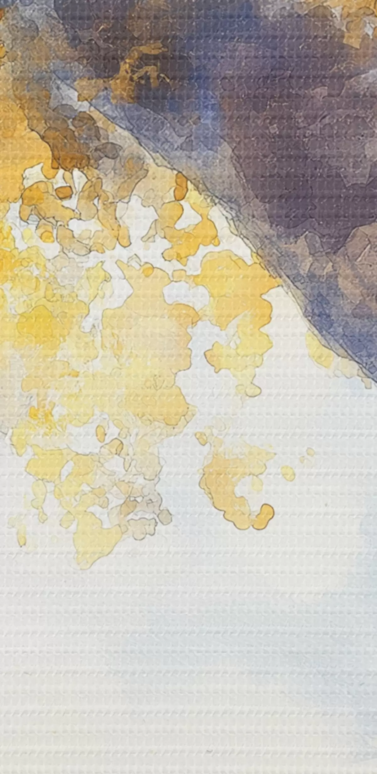 De fijne weving van draden op dit doek lijkt op het oppervlak van professionele schildersdoeken.
