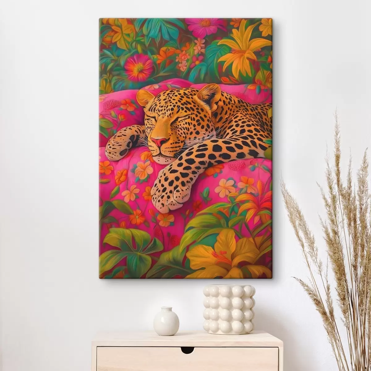 Schilderij Slapend luipaard tussen de bloemen Art. s41929