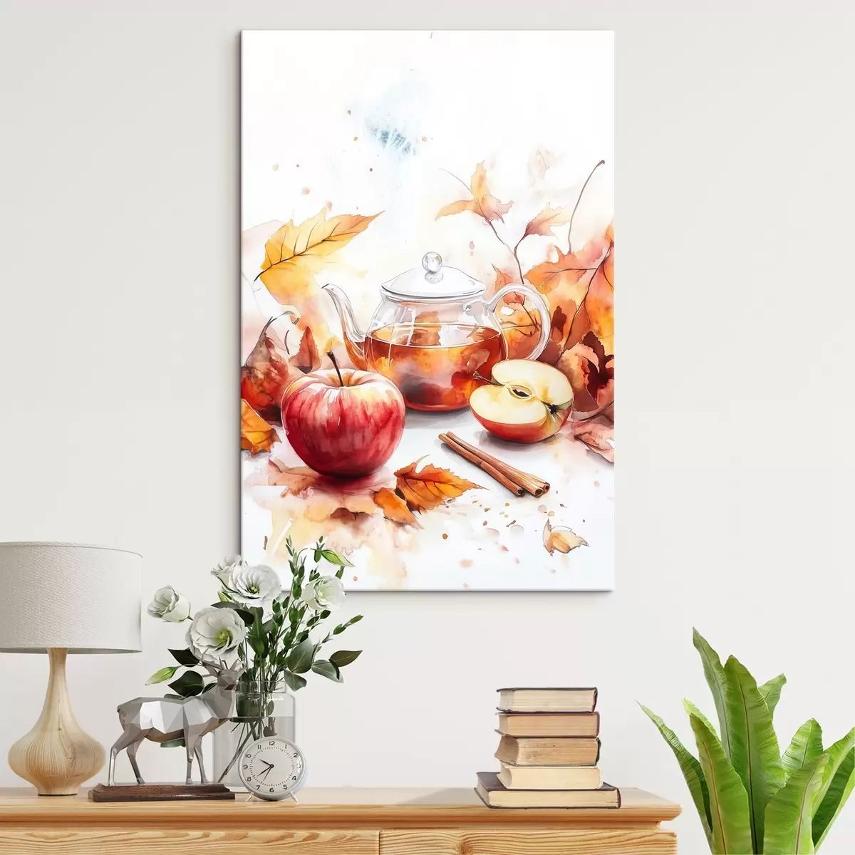 Schilderij Aquarel theepot met glühwein, appel, kaneel, herfstkleuren Art. s41943