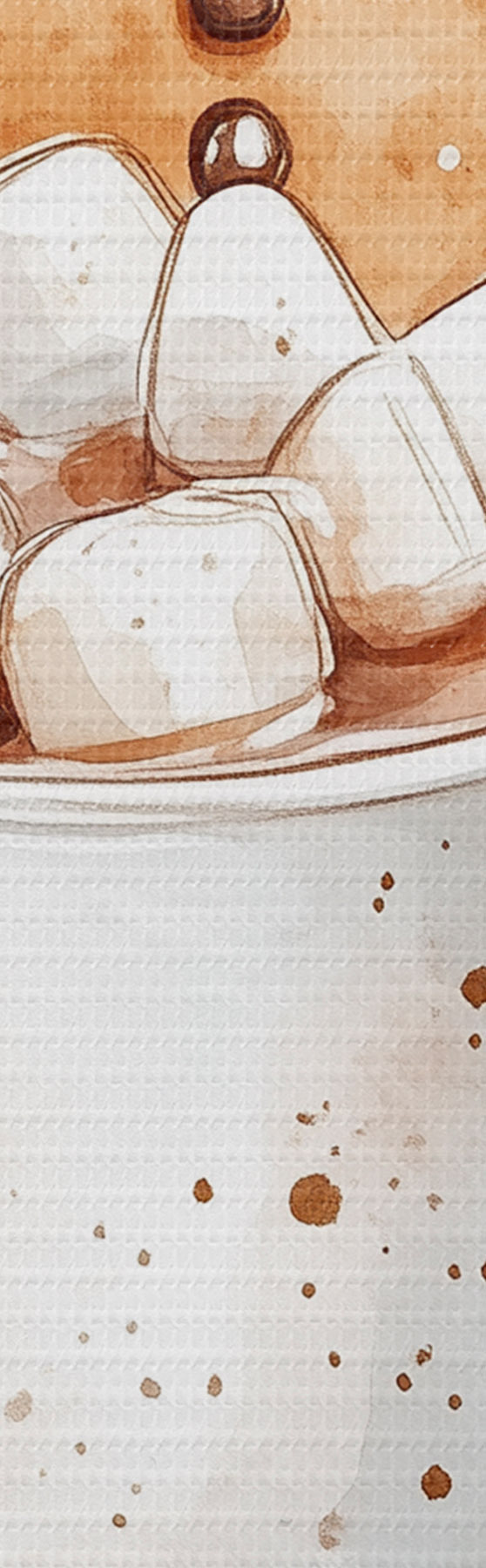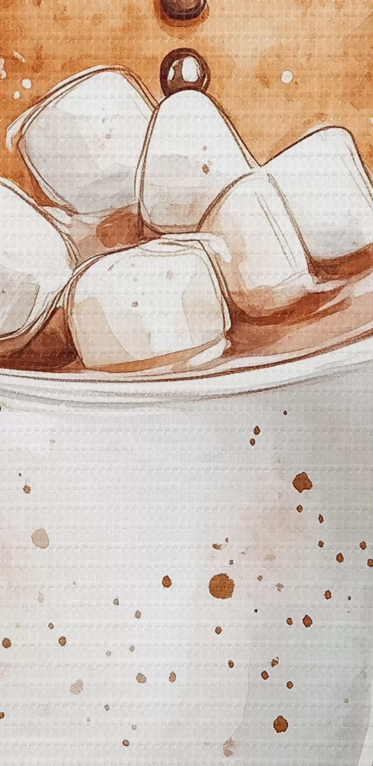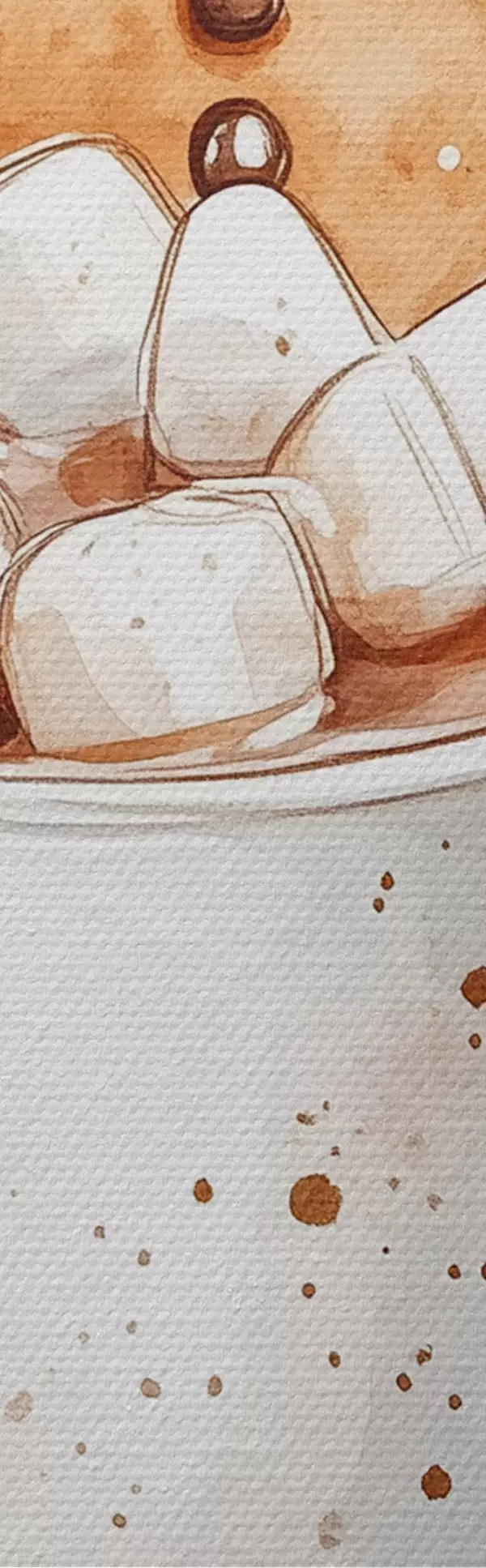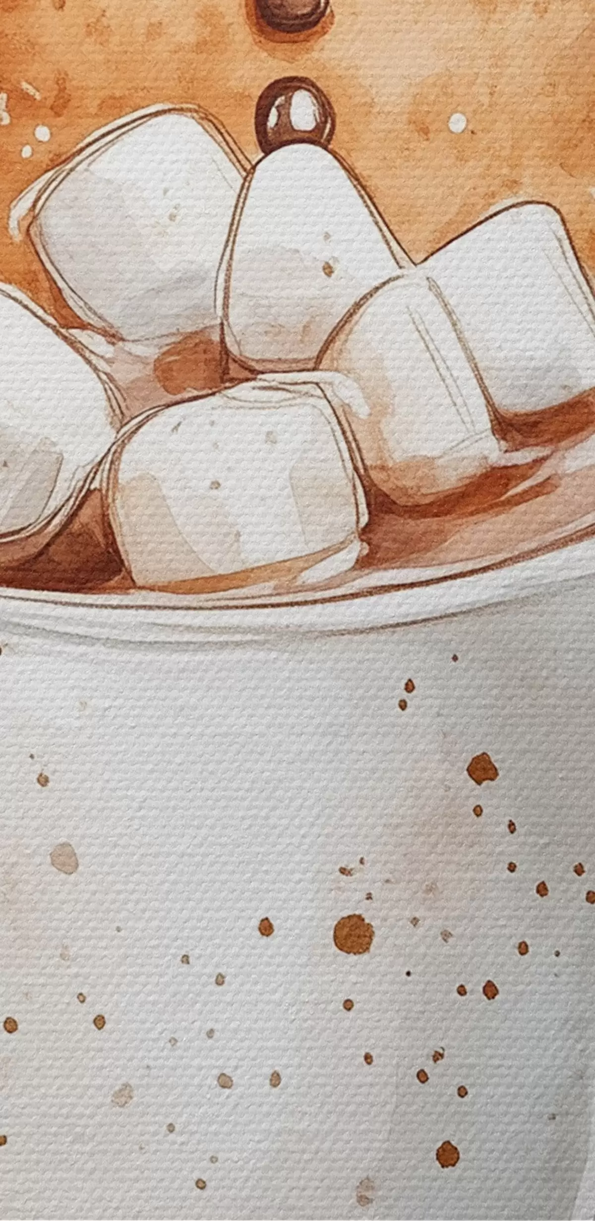 Schilderijen Peperkoekmannen in het kopje koffie, kaneel, marshmallows, aquarel stijl, beige s41948