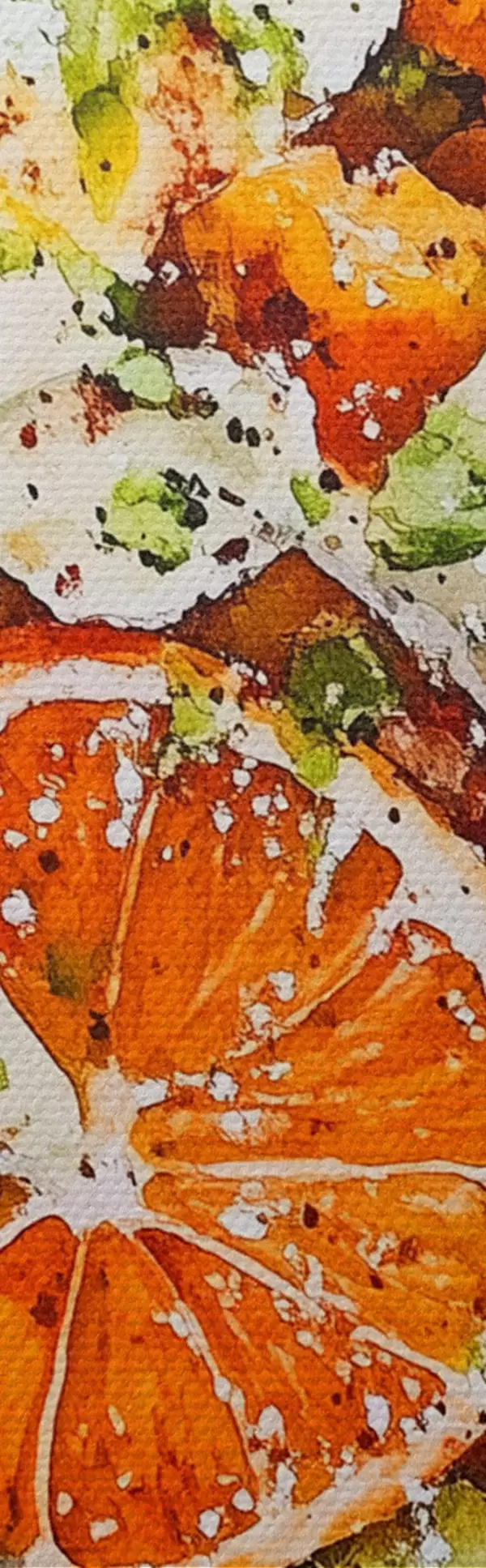 Schilderij Heerlijke salade met sinaasappels, feta, pompoenen en avocado, aquarel eten Art. s41959