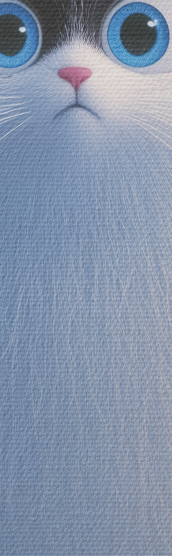 Schilderijen Een verraste pluizige kat met een meisje in illustratiestijl s41974