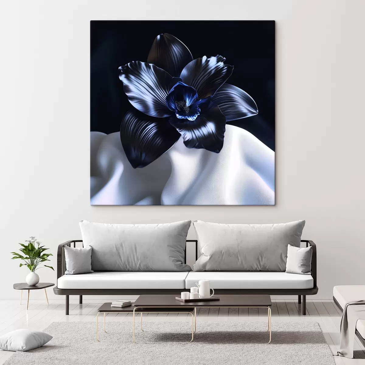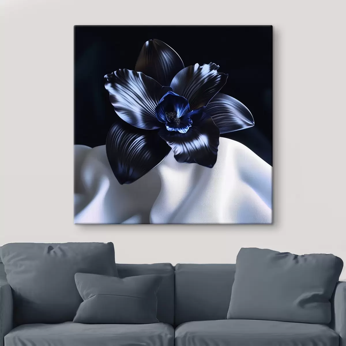 Schilderij Een zwarte orchidee tegen een zijden achtergrond Art. s41976