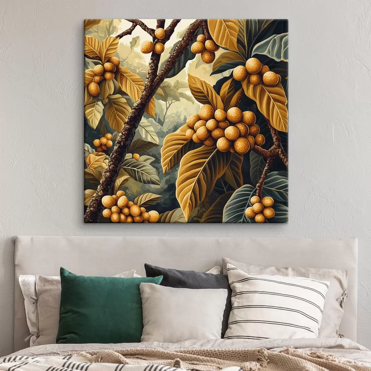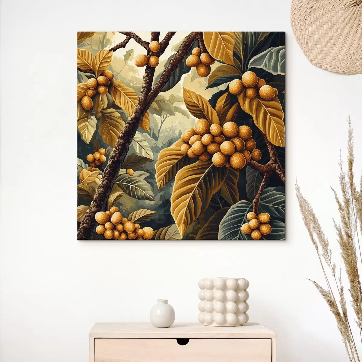 Schilderij Een koffieboom met vruchten en bladeren in gele tinten Art. s41981