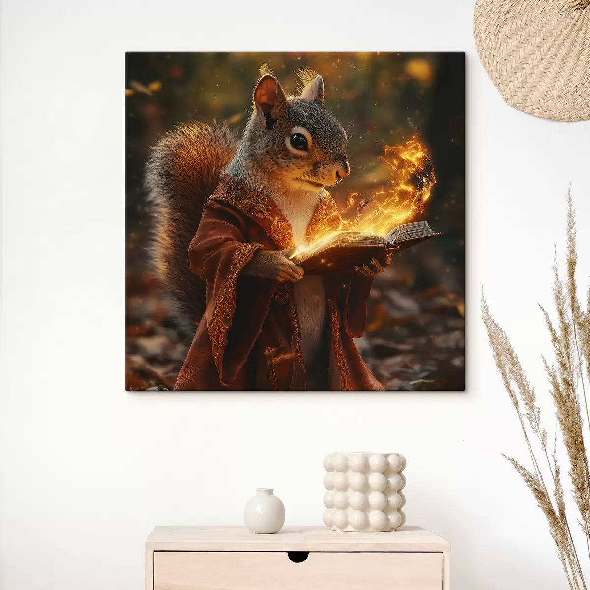 Schilderij Een mystieke magische eekhoorn in een tovenaarskleed met een magisch boekdeel in zijn handen Art. s41983