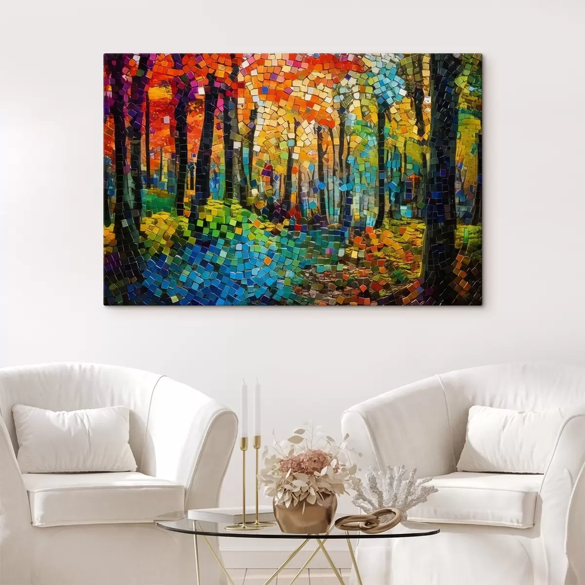 Schilderijen bos gemaakt van kleine mozaïektegeltjes s41995