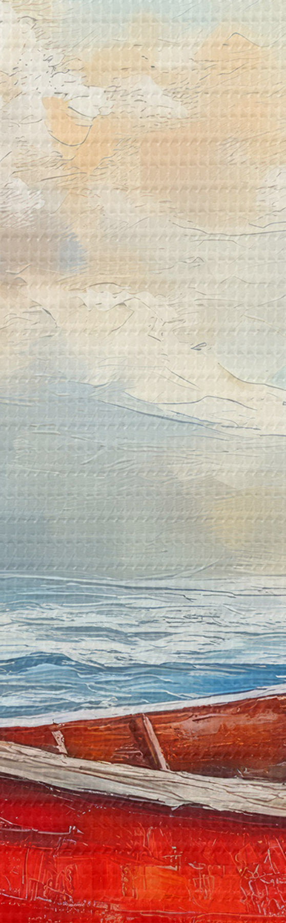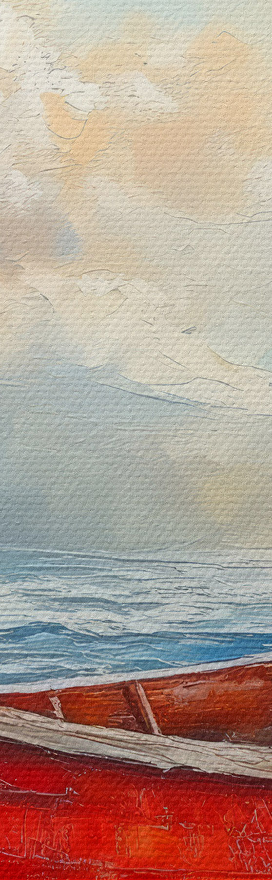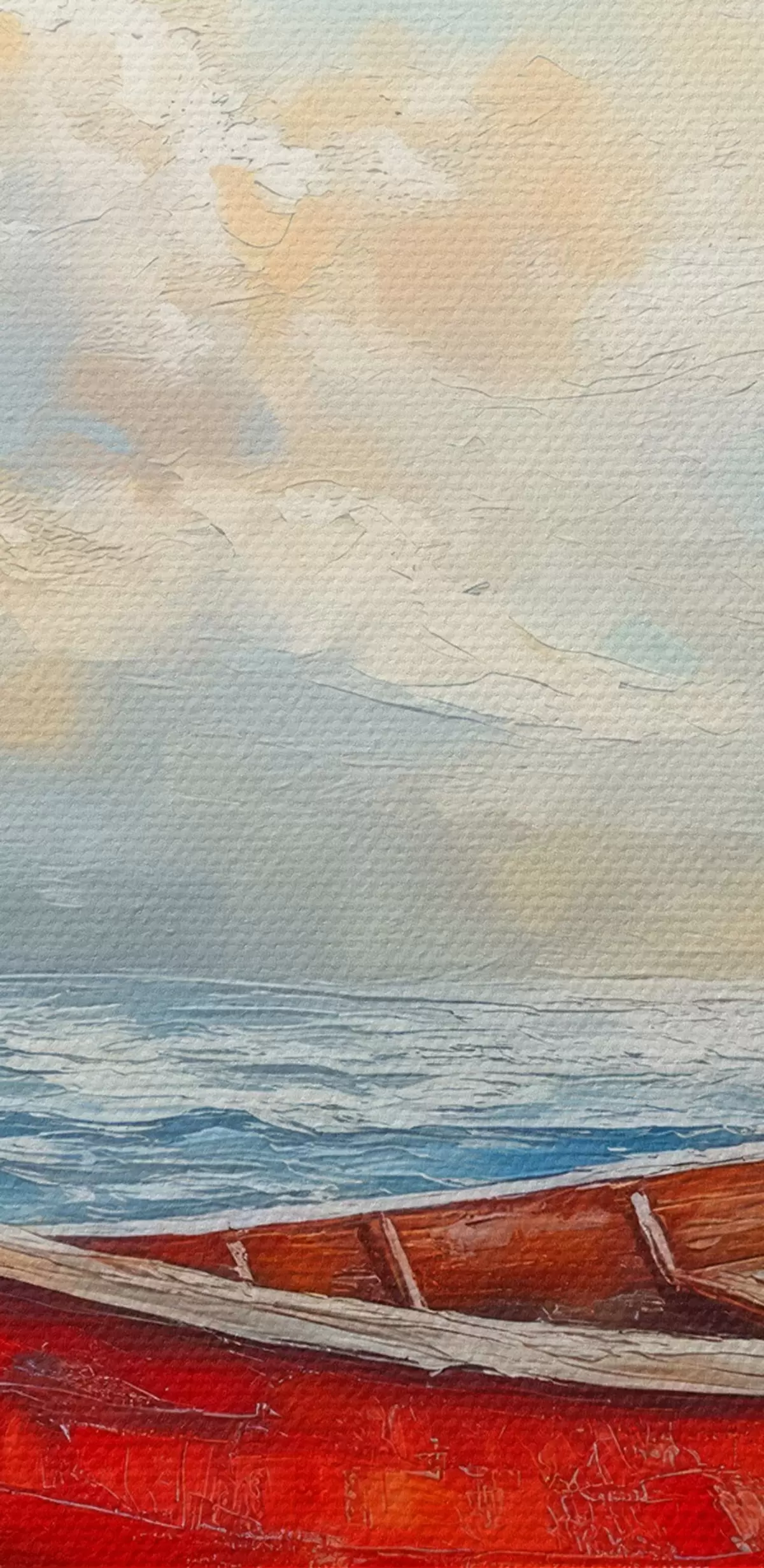 Schilderij rode boot aan zee in olieverfstijl Art. s42009