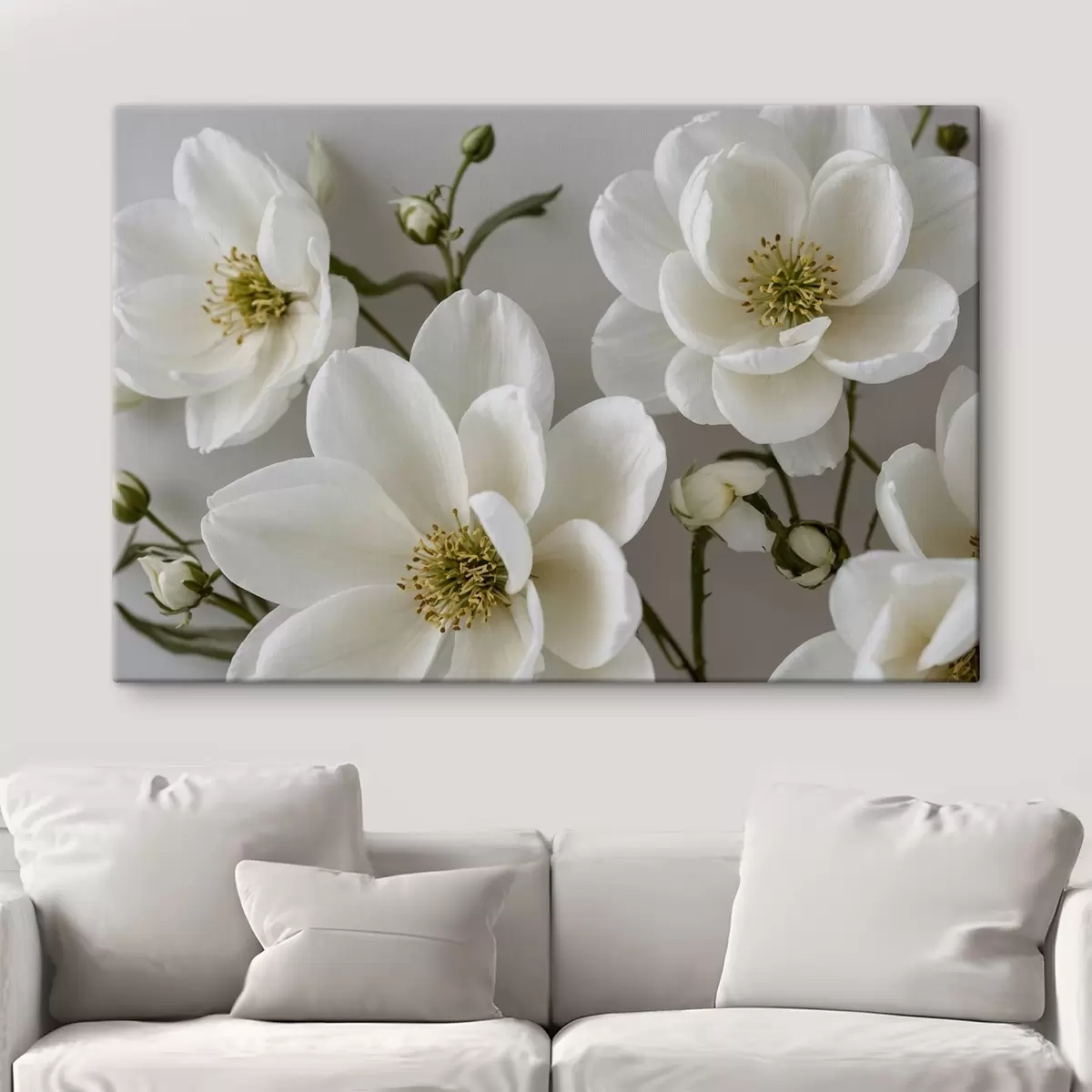 Schilderij Witte bloemen en stengels op lichte achtergrond Art. s42097