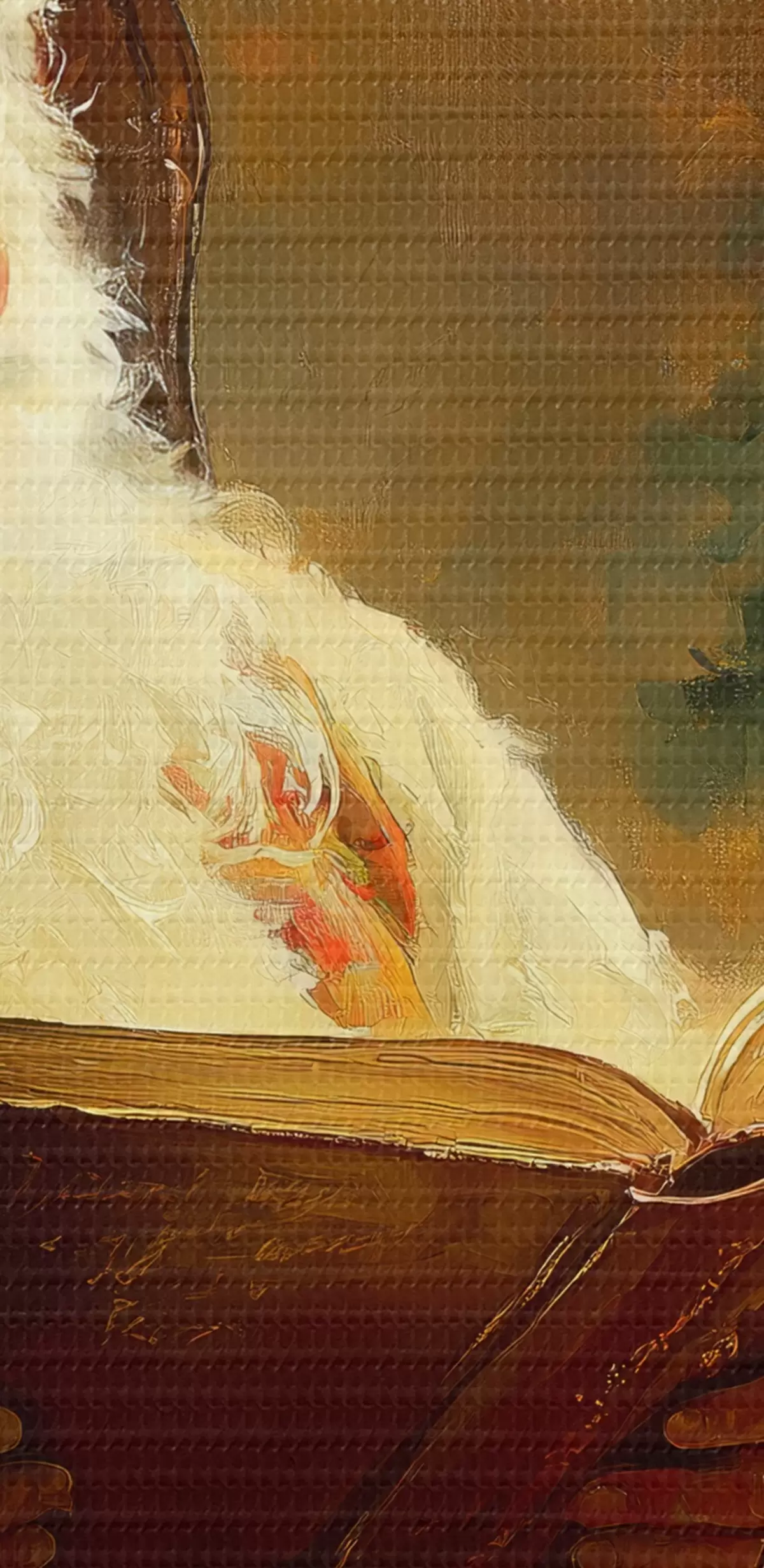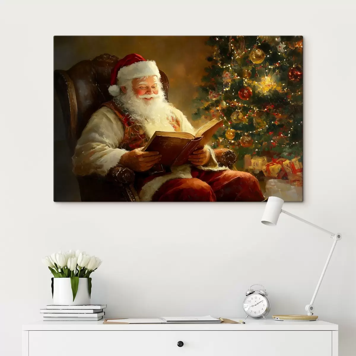 Schilderij De Kerstman leest een boek bij de kerstboom Art. s42100