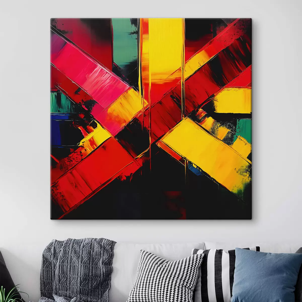 Het schilderij kan direct na ontvangst worden opgehangen. Het schilderij wordt opgespannen op een 2 cm breed houten spieraam.