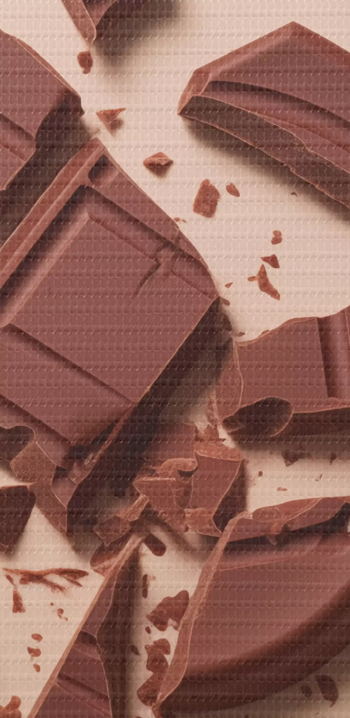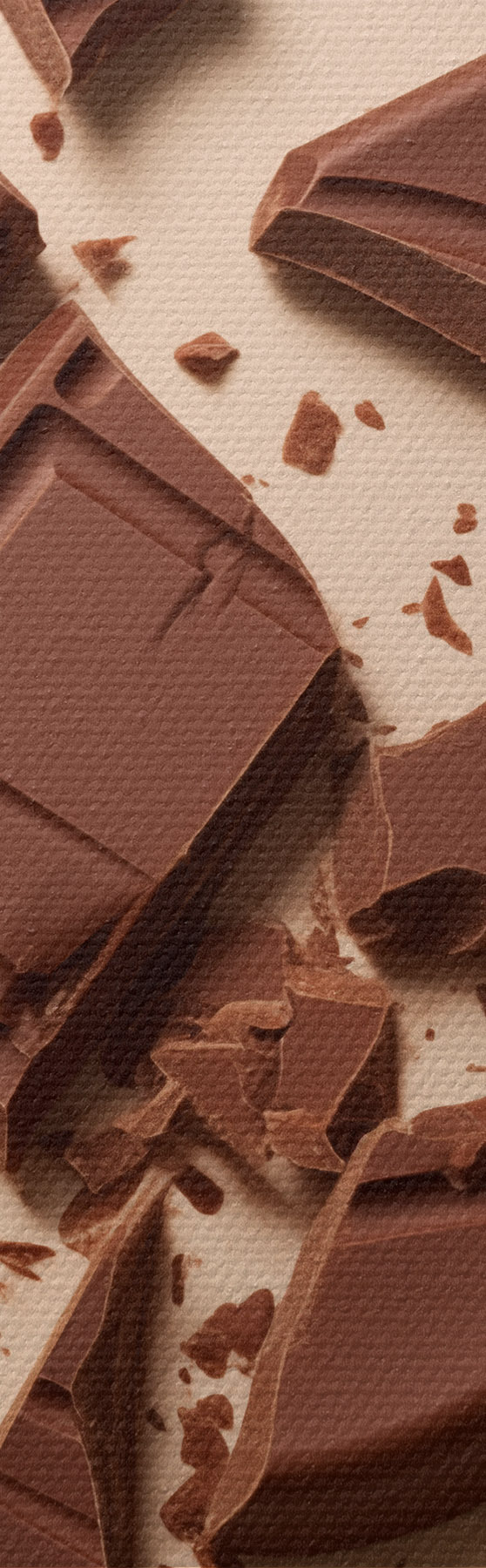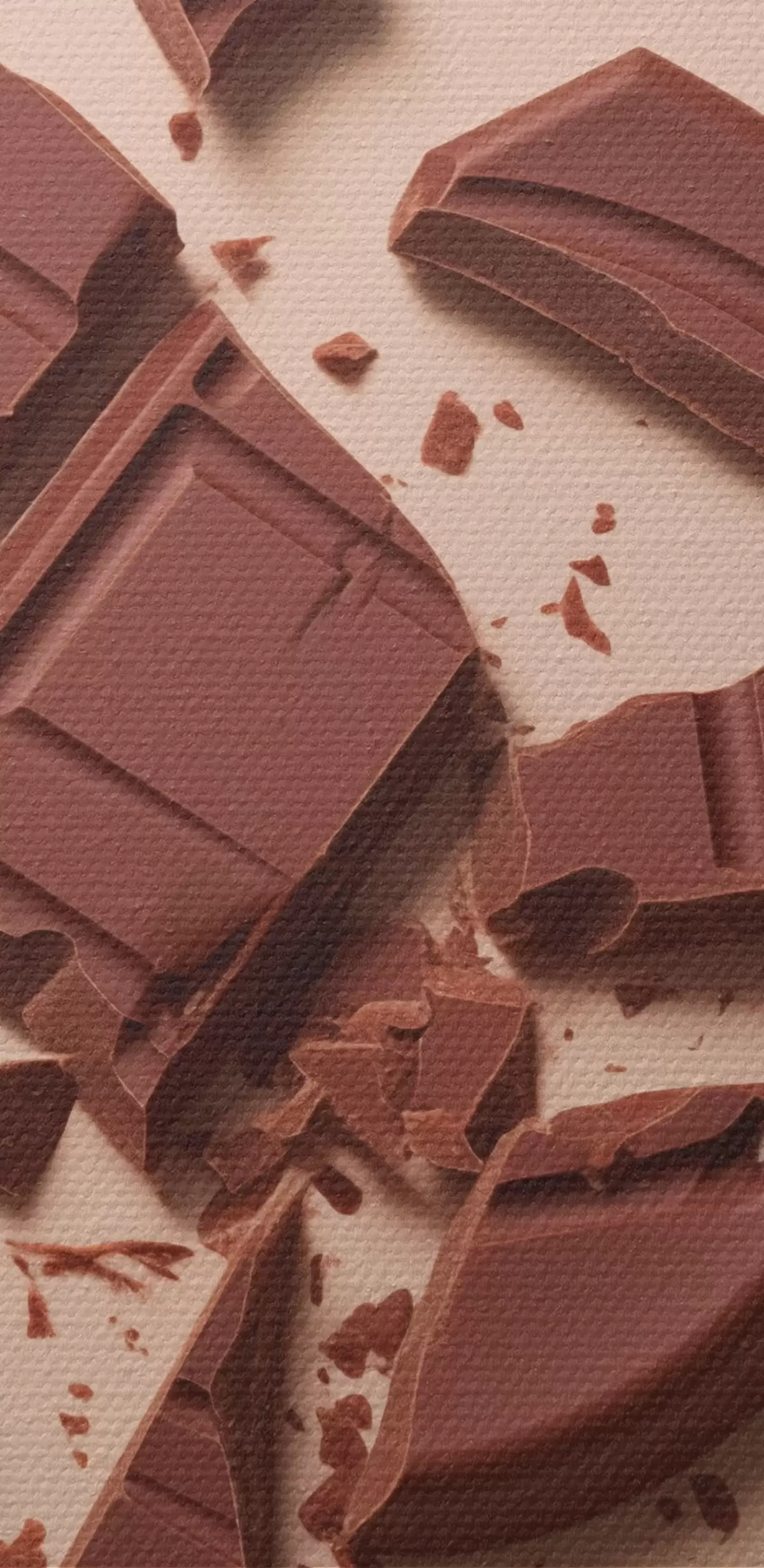 Schilderij Gebroken stukjes en kruimels chocolade in verschillende vormen Art. s42114