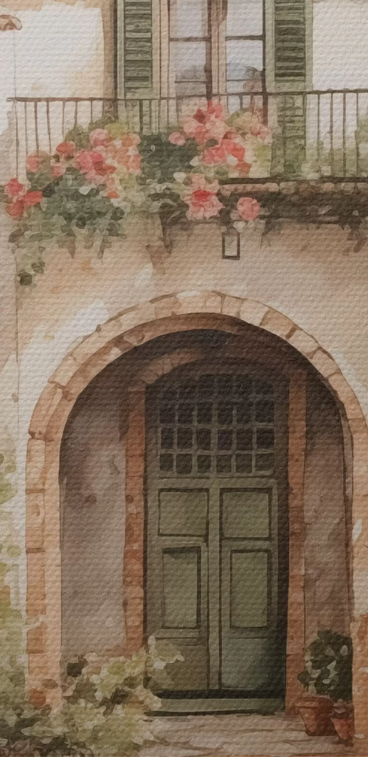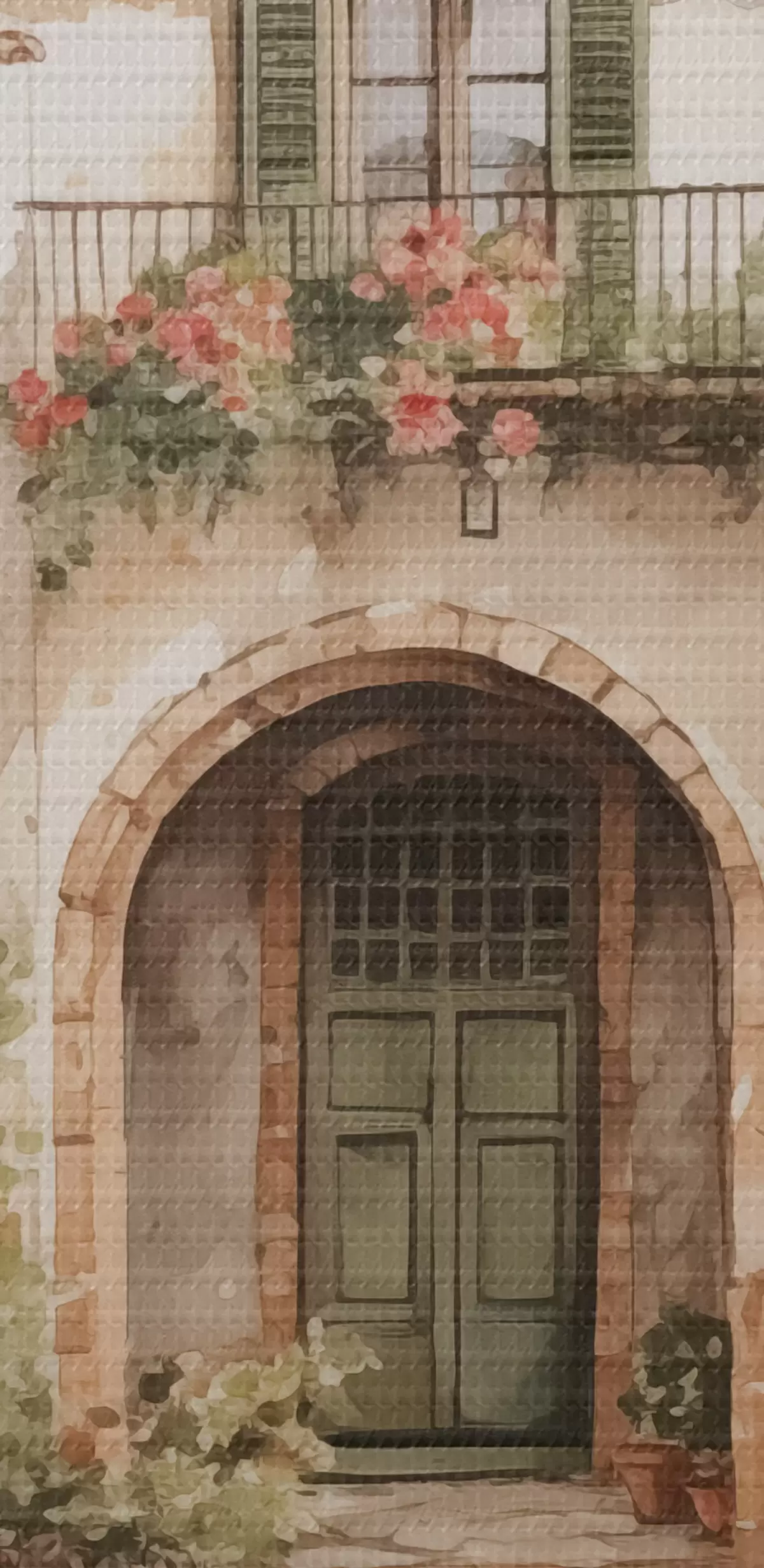 Schilderij Italiaanse binnenplaats met bloempotten imitatie van aquarel Art. s42126