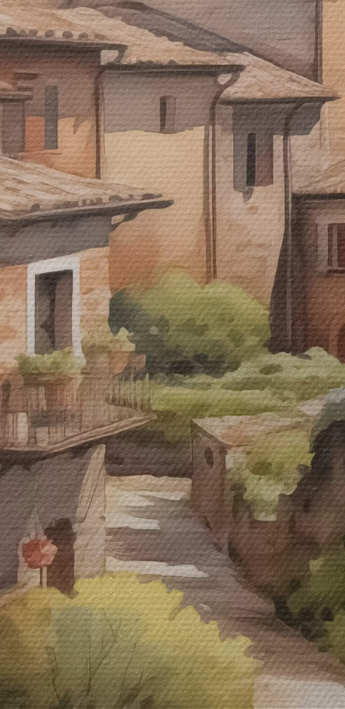 Schilderijen Italiaanse buitenwijk straat imitatie aquarel s42135